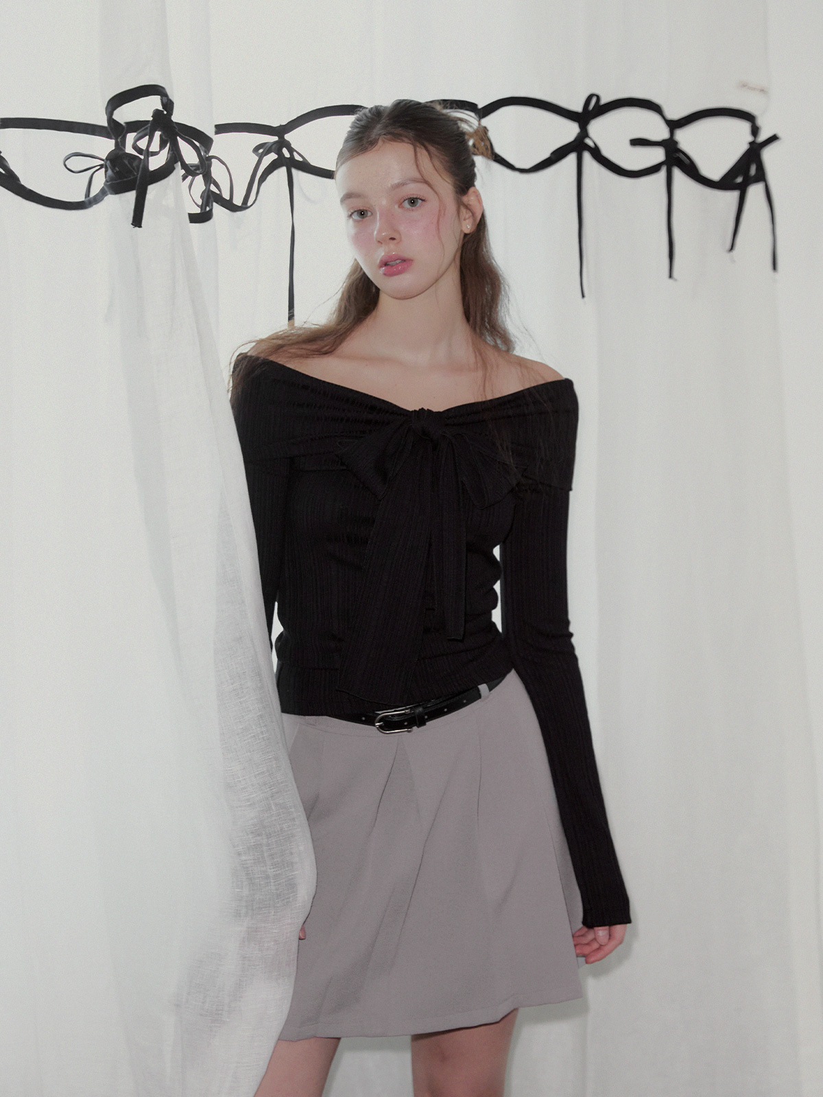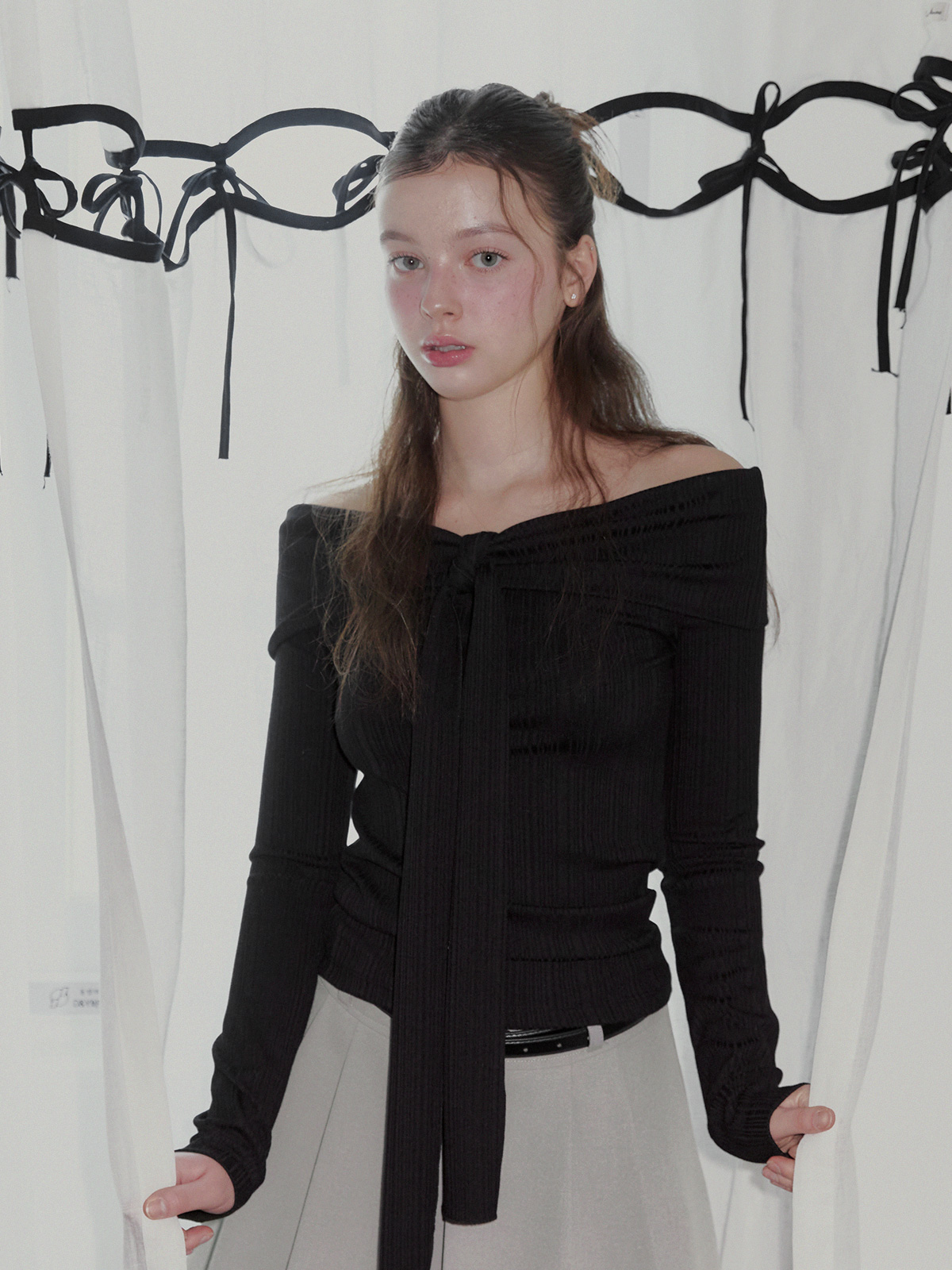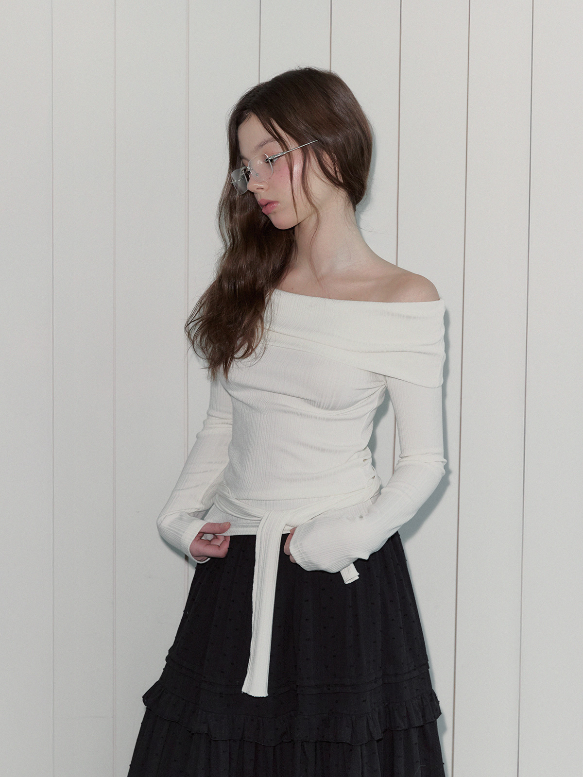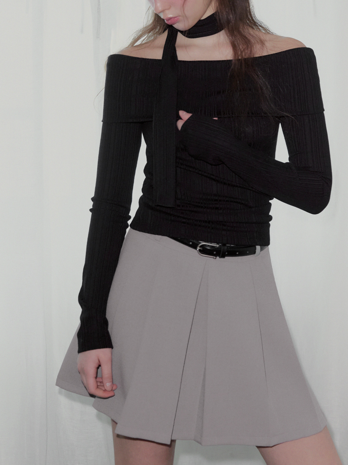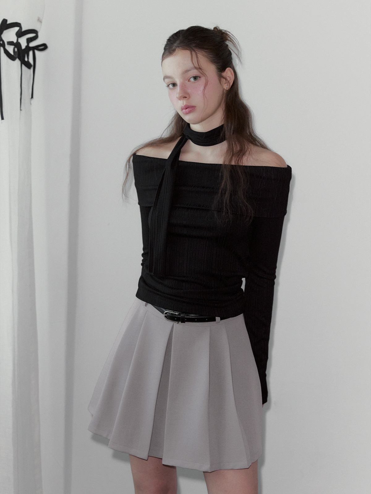 리든 오프숄더 긴팔 티셔츠(스트랩set)