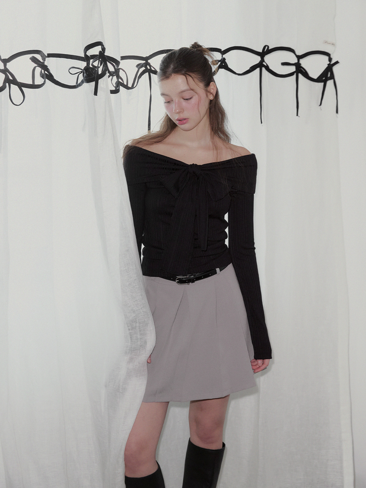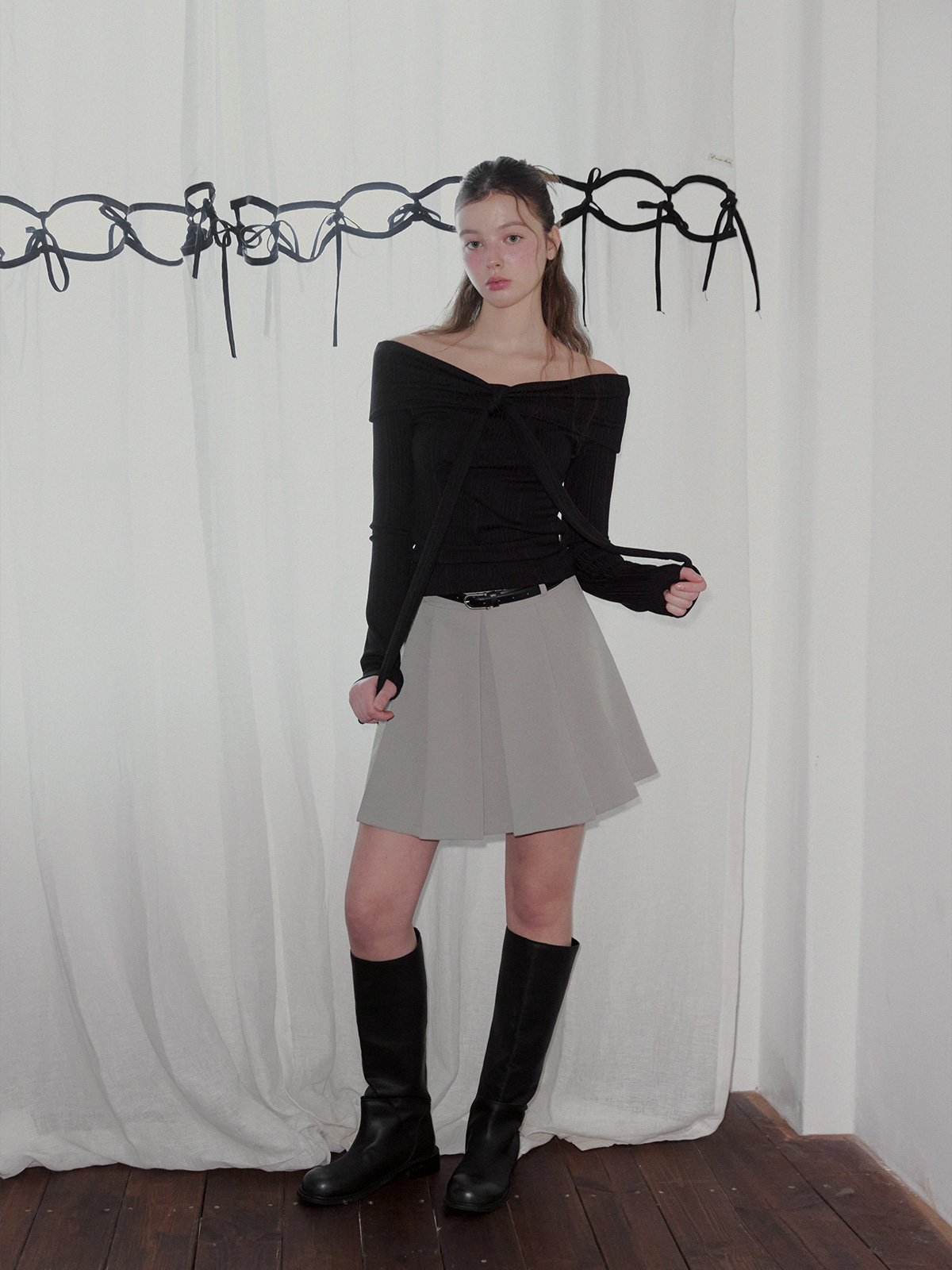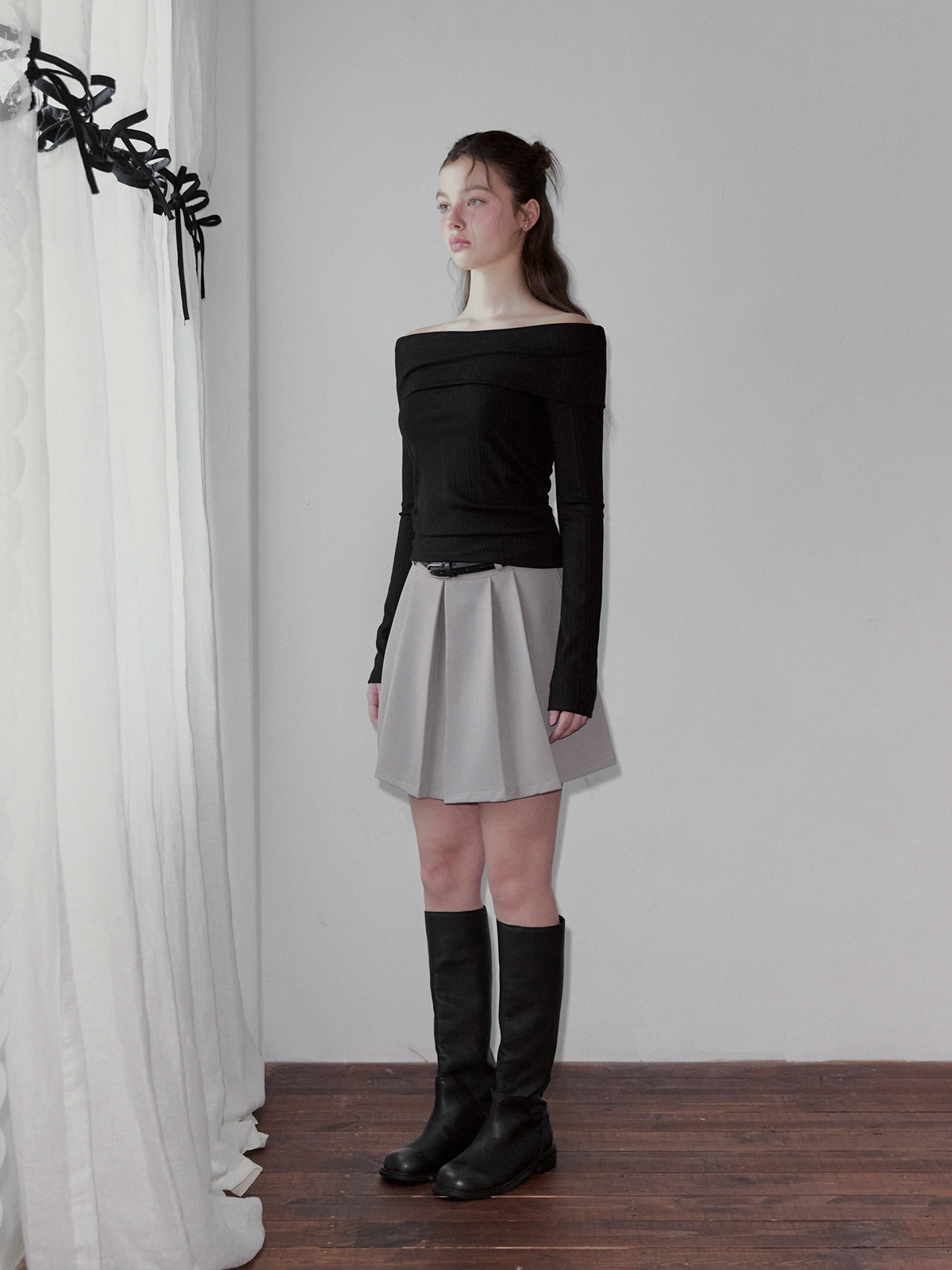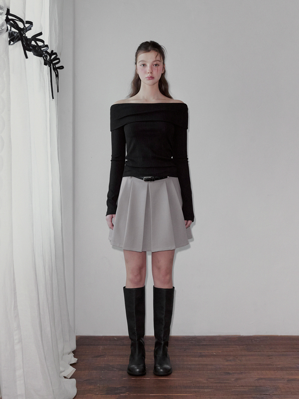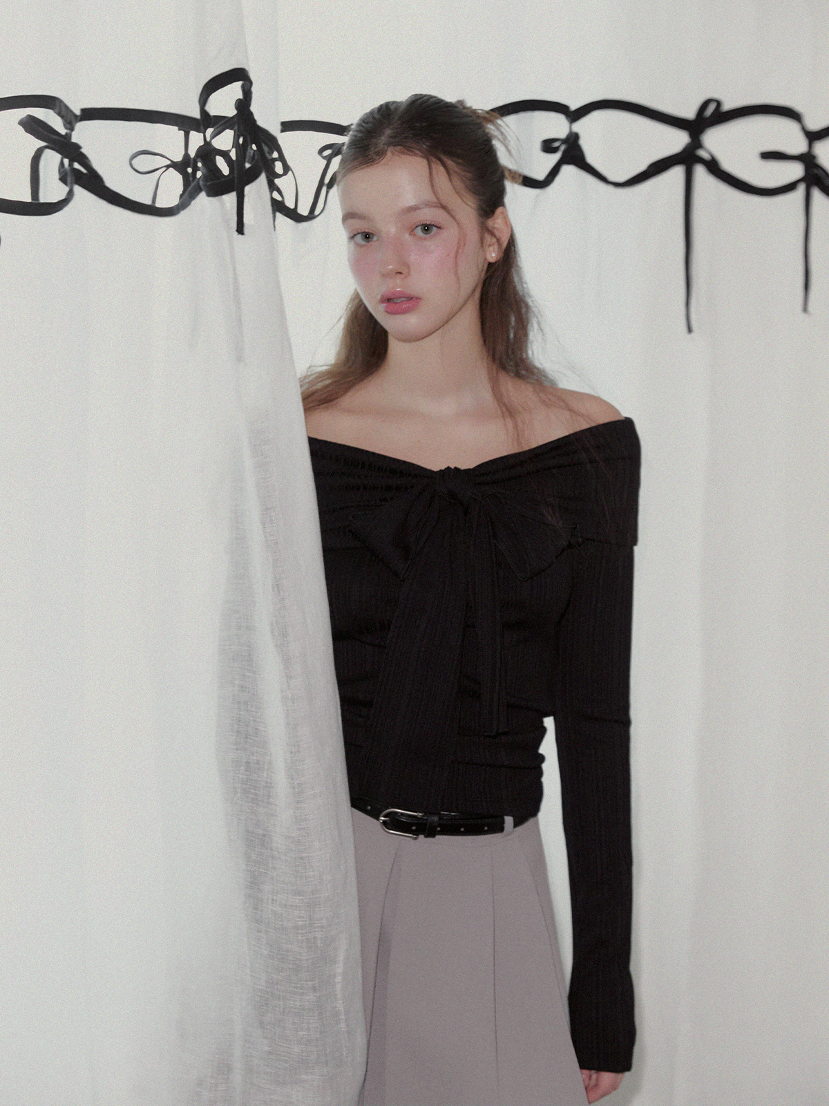 리든 오프숄더 긴팔 티셔츠(스트랩set)