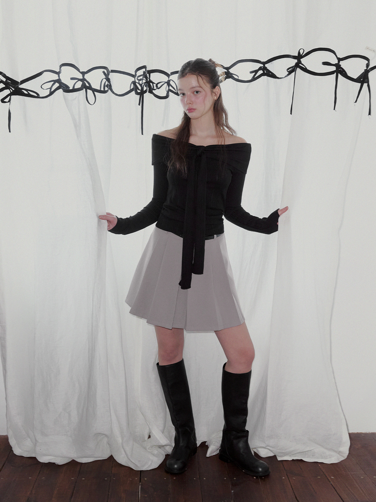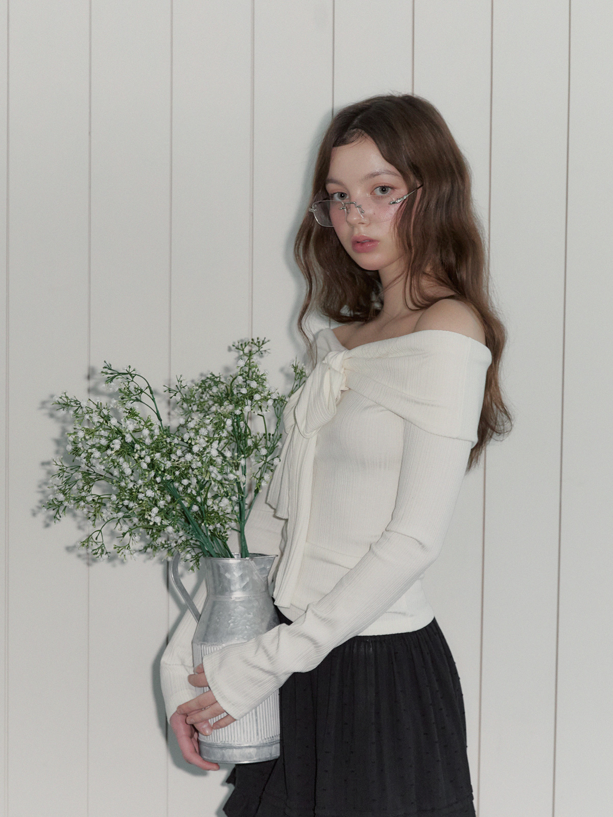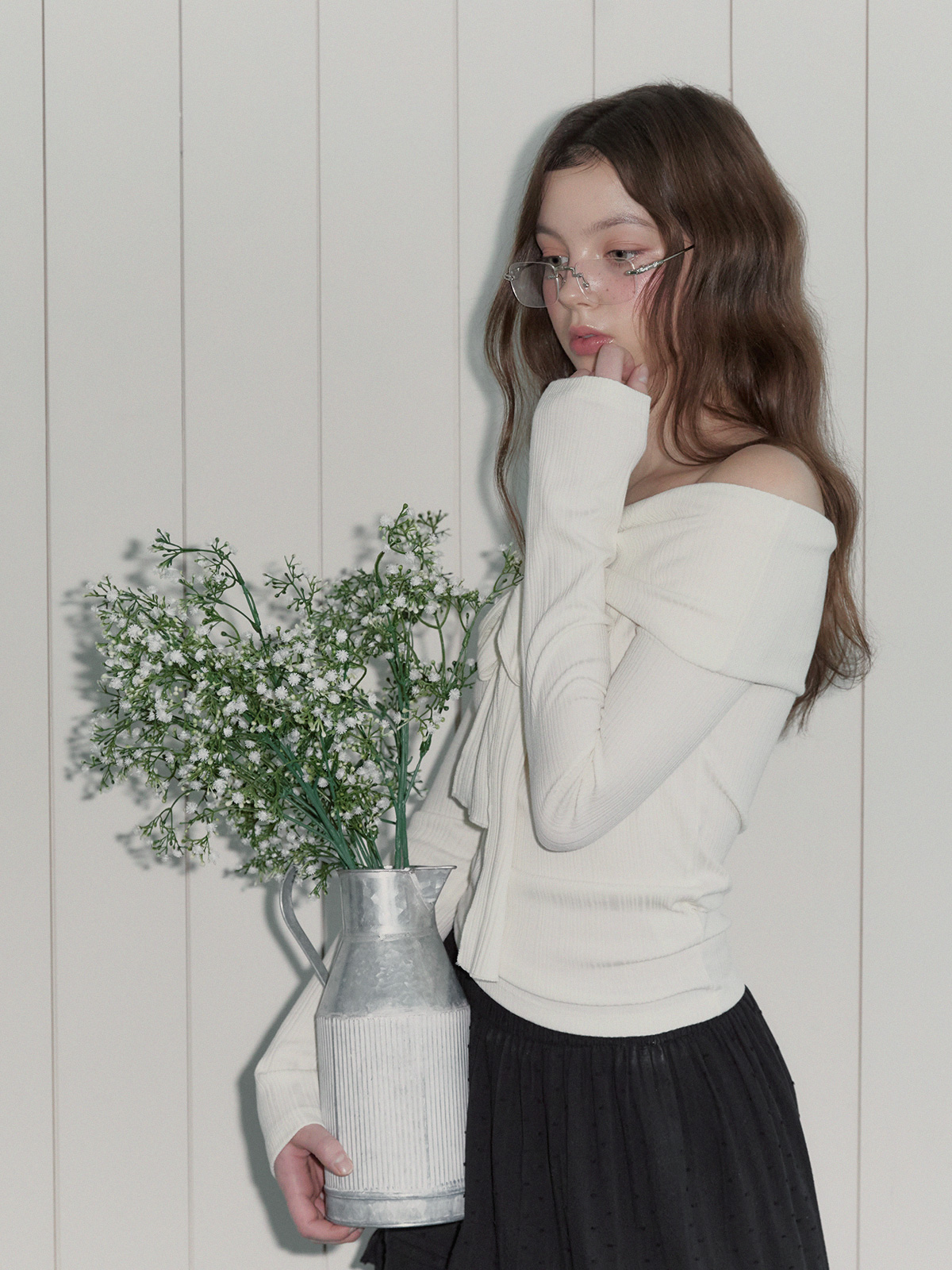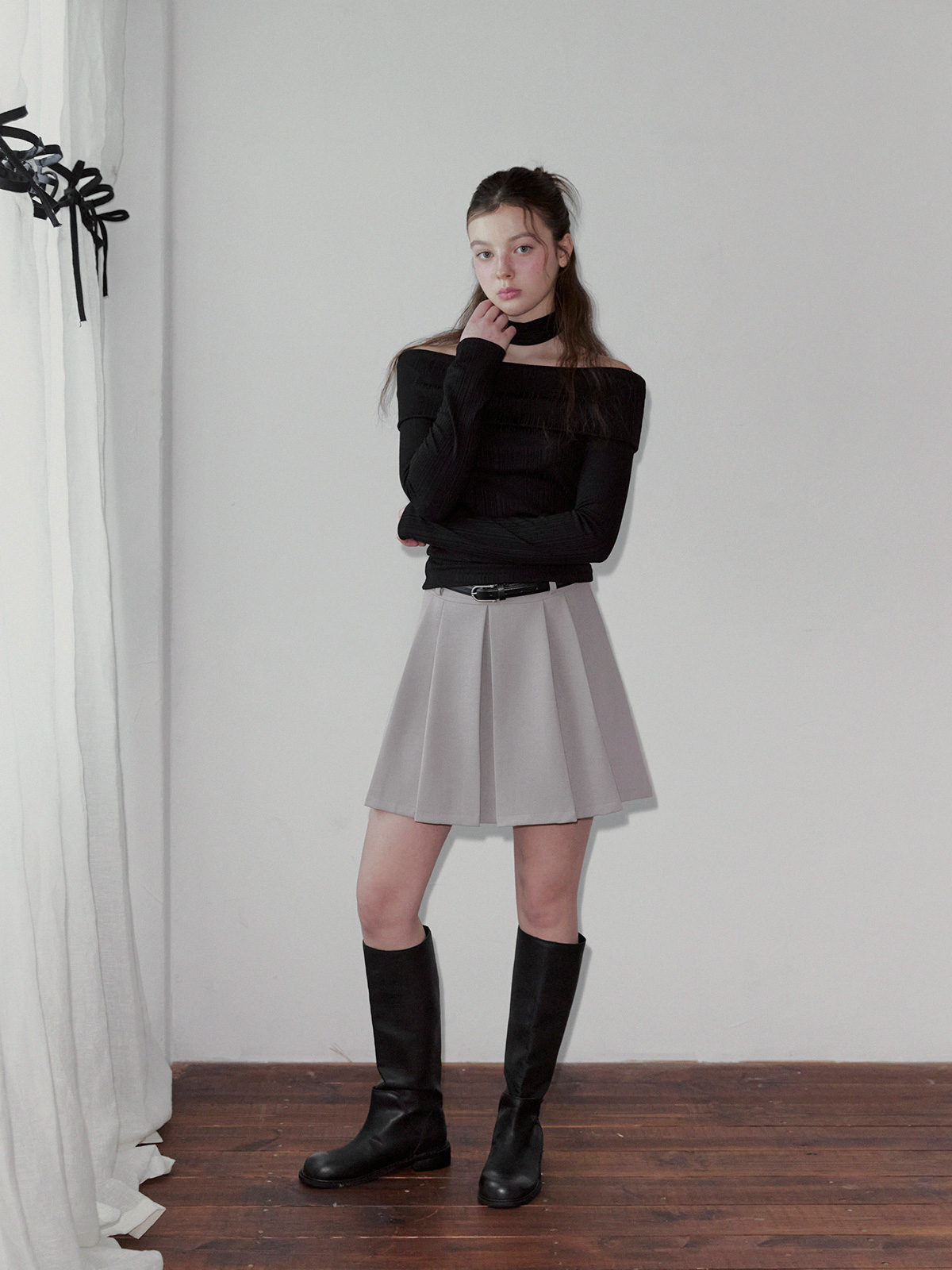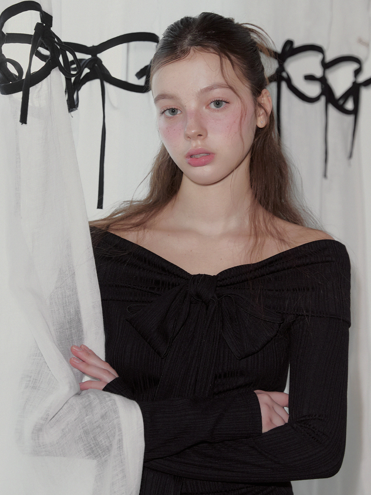 리든 오프숄더 긴팔 티셔츠(스트랩set)