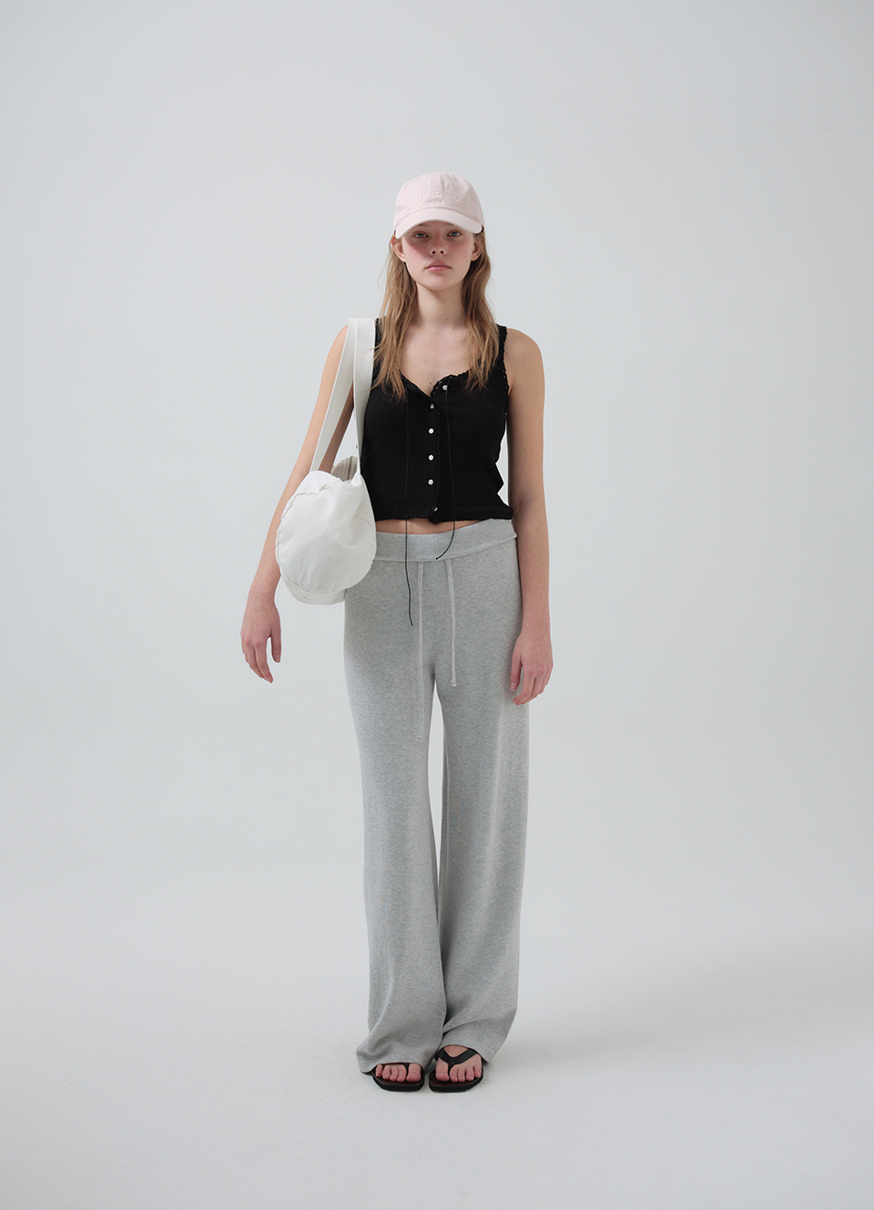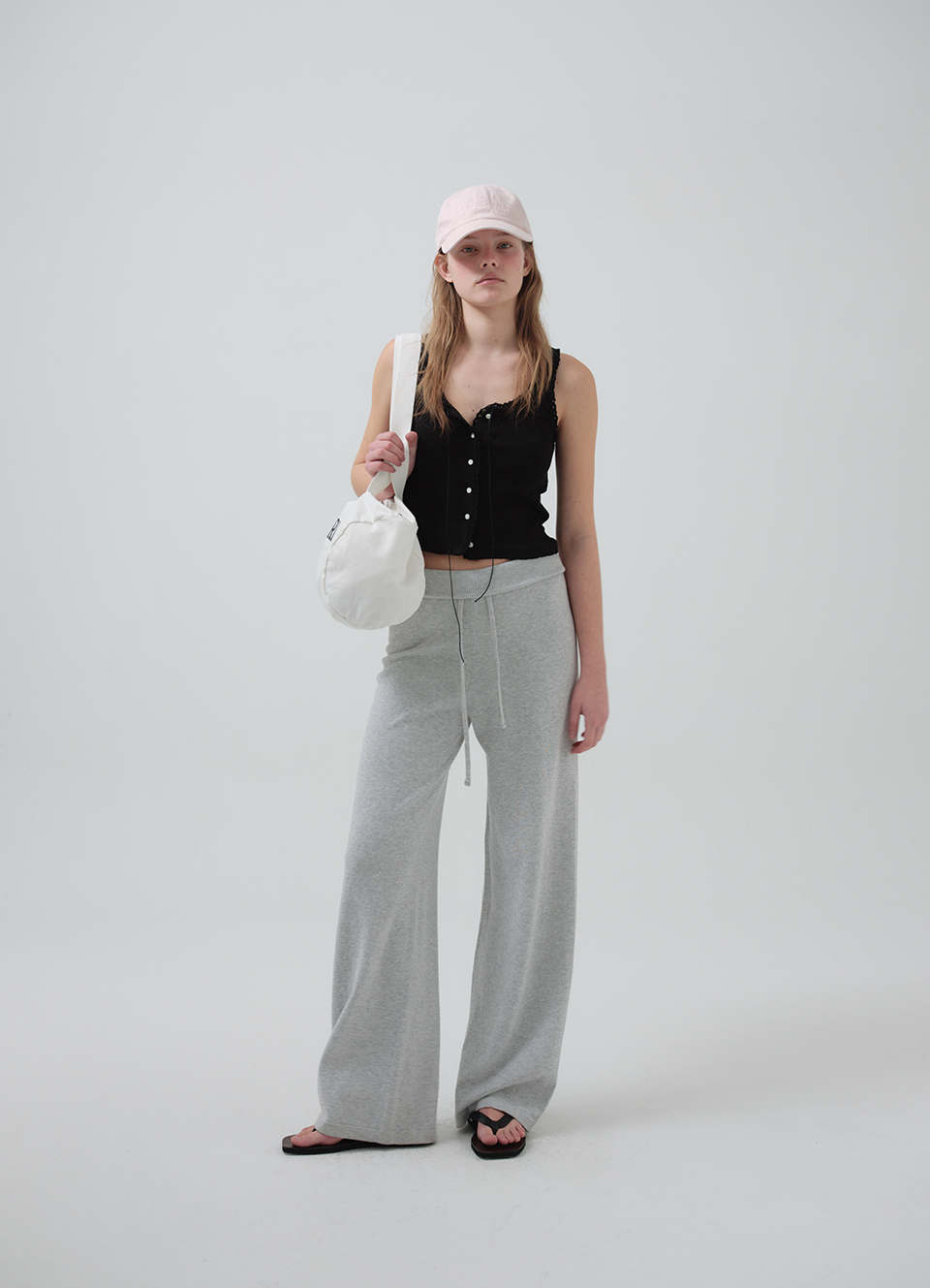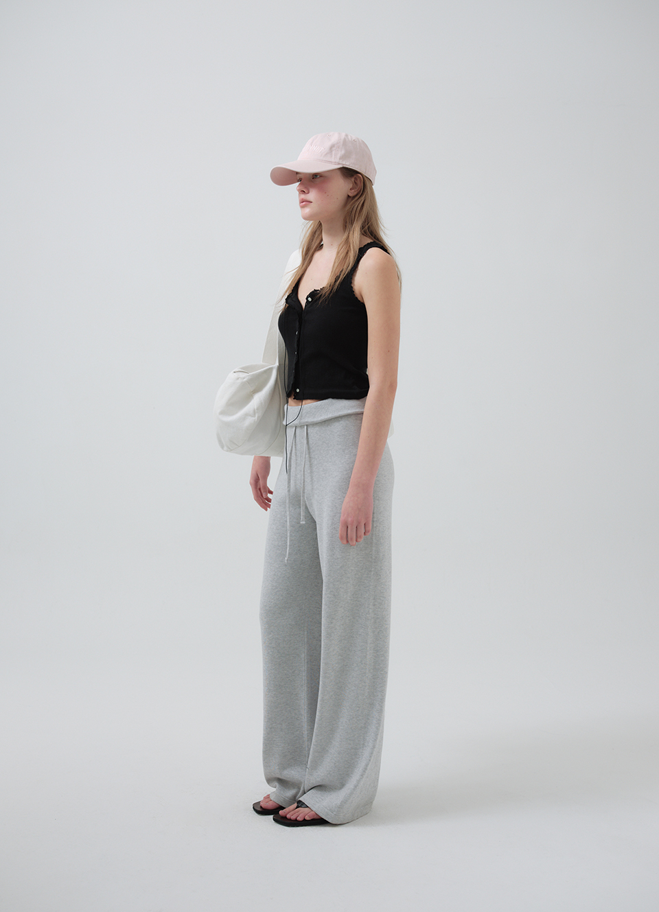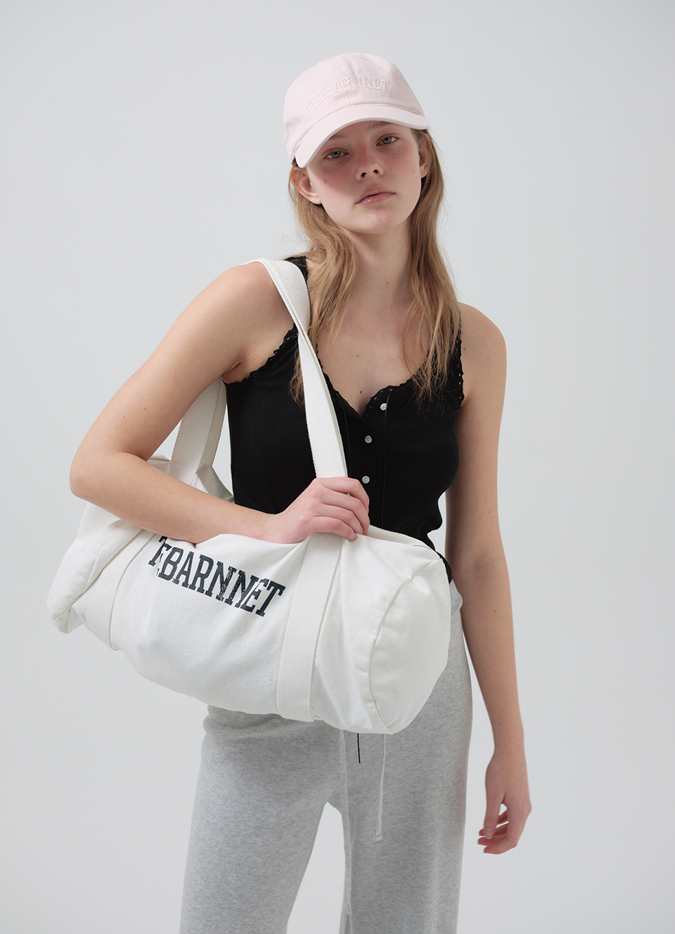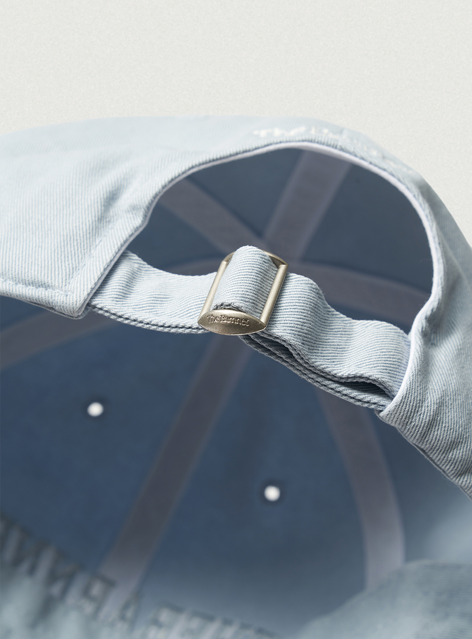 톤온톤 컬러의 로고 자수와 조절 가능한 후면 스트랩 디테일