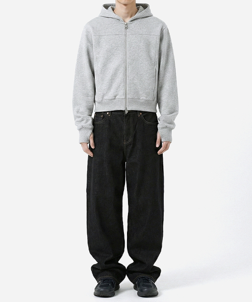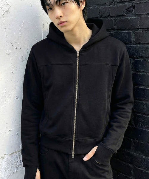 풀 집 핑거 홀 스웨트 셔츠 [블랙]