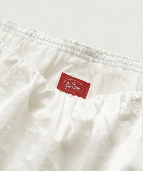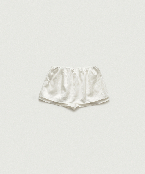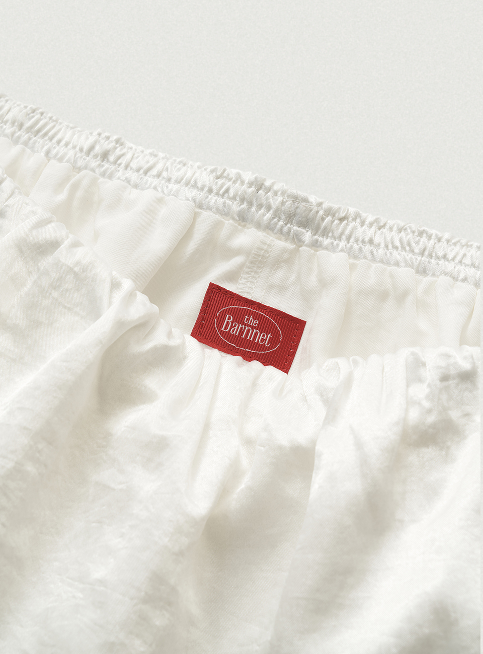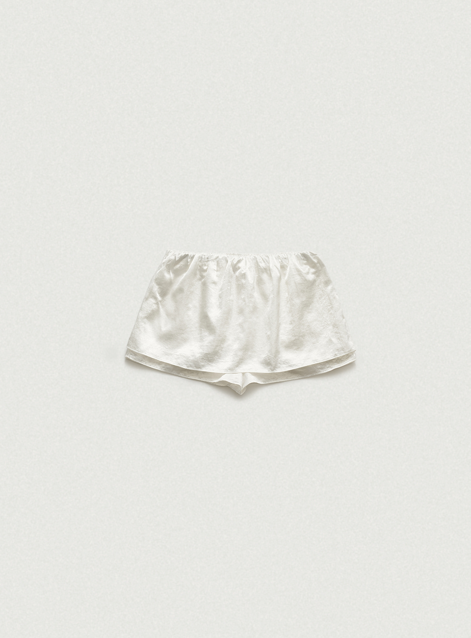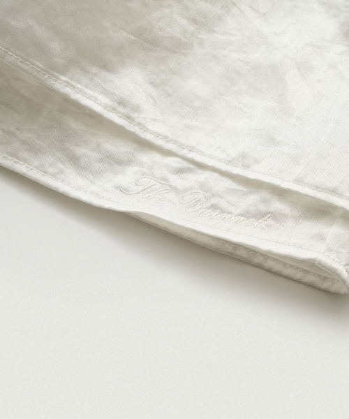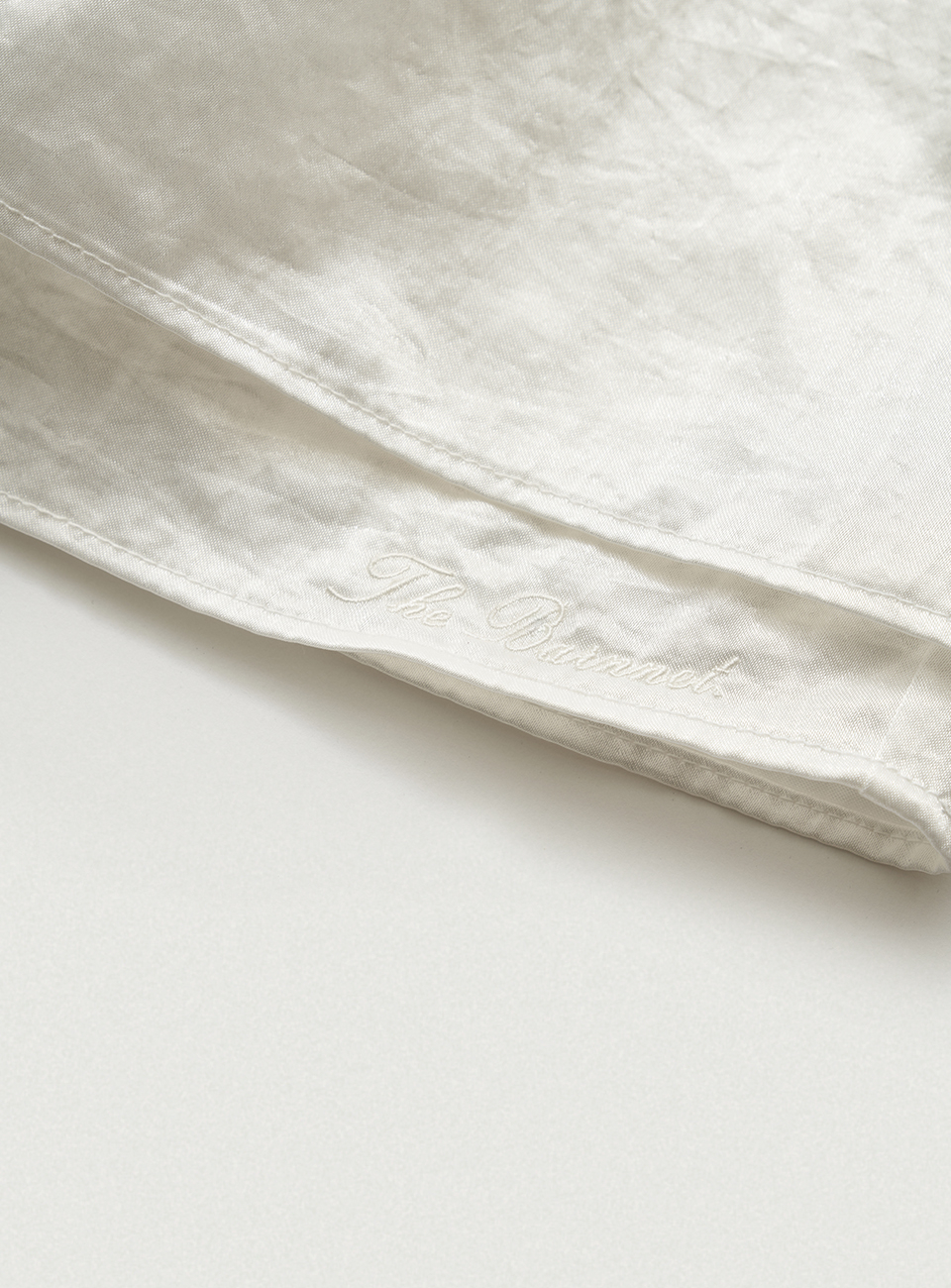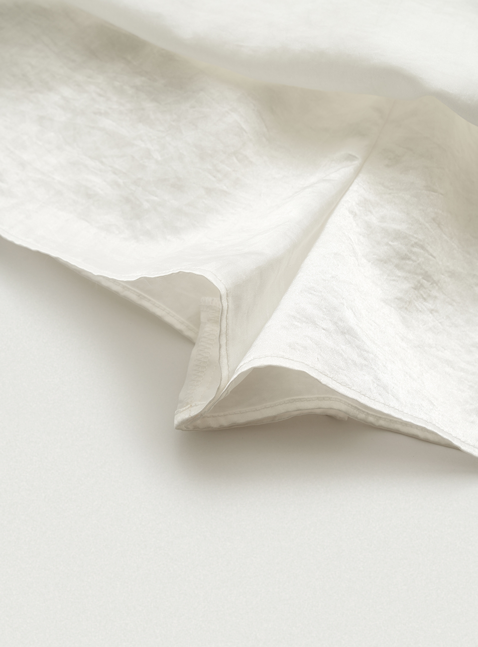 아이보리 컬러의 은은한 광택감과 유연한 텍스처가 돋보이는 새틴 패브릭