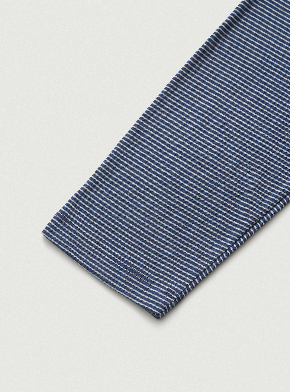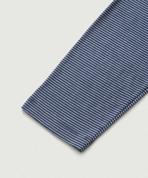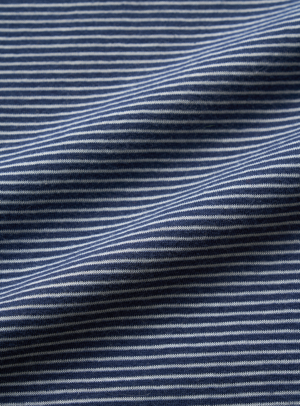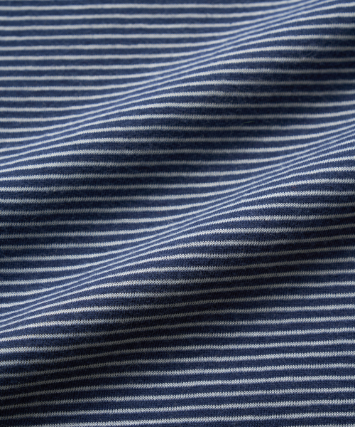 네이비 컬러의 스트라이프 패턴과 부드러운 터치감의 코튼 혼방 패브릭