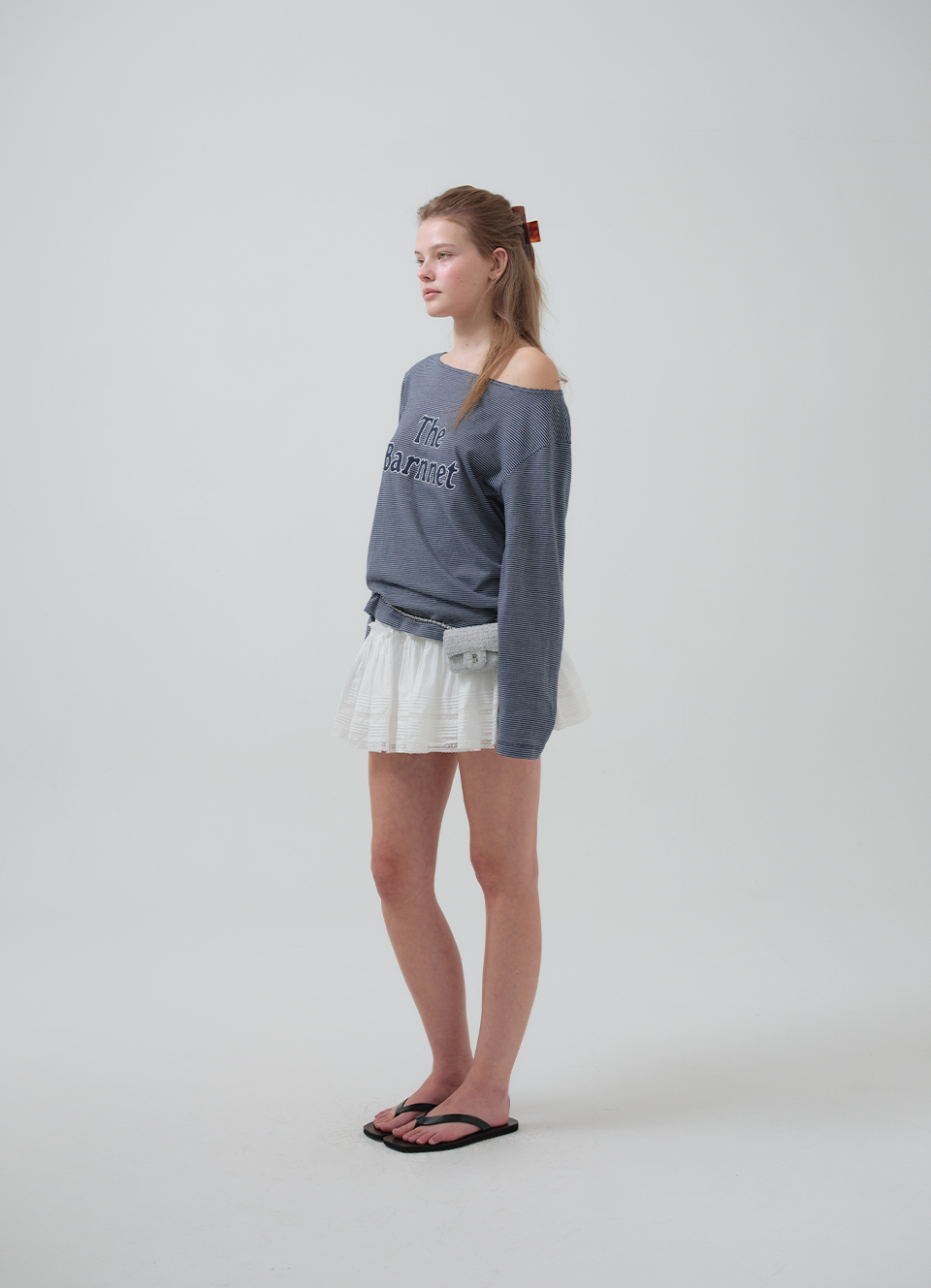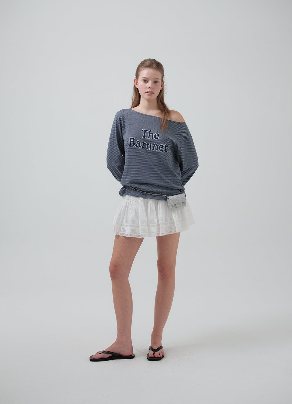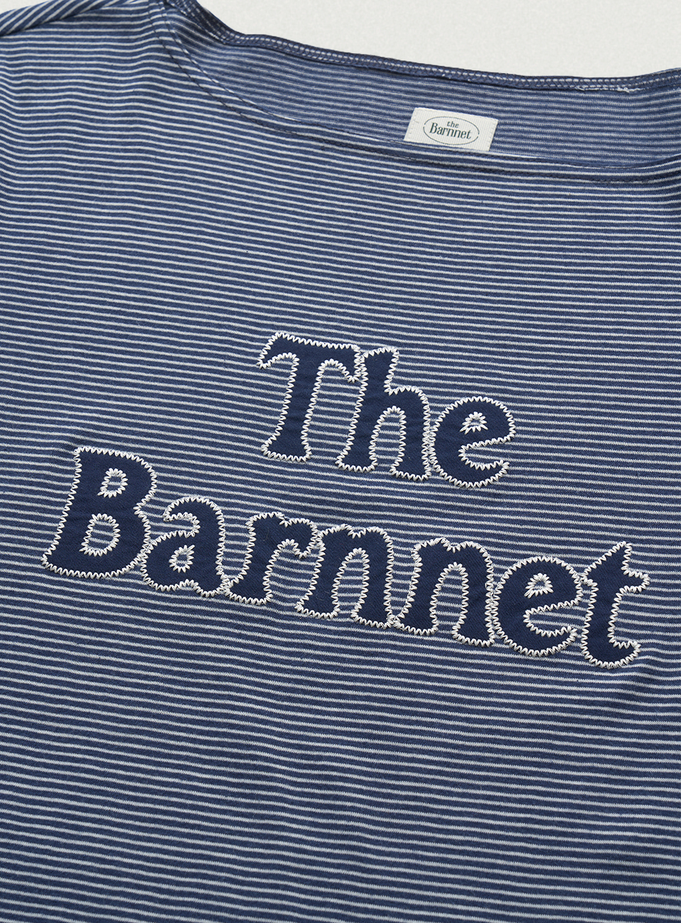보트넥 라인의 긴소매 티셔츠