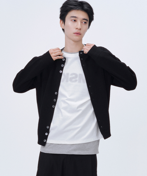 [미세키서울 맨X리제임스] Diagonal henley neck short sleeve BLACK