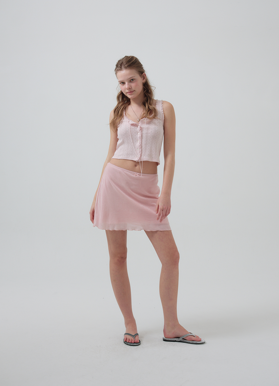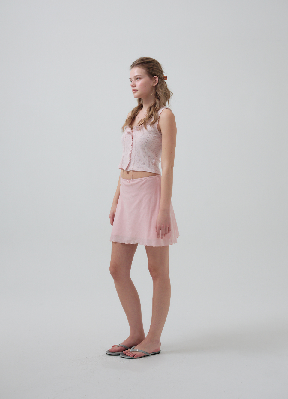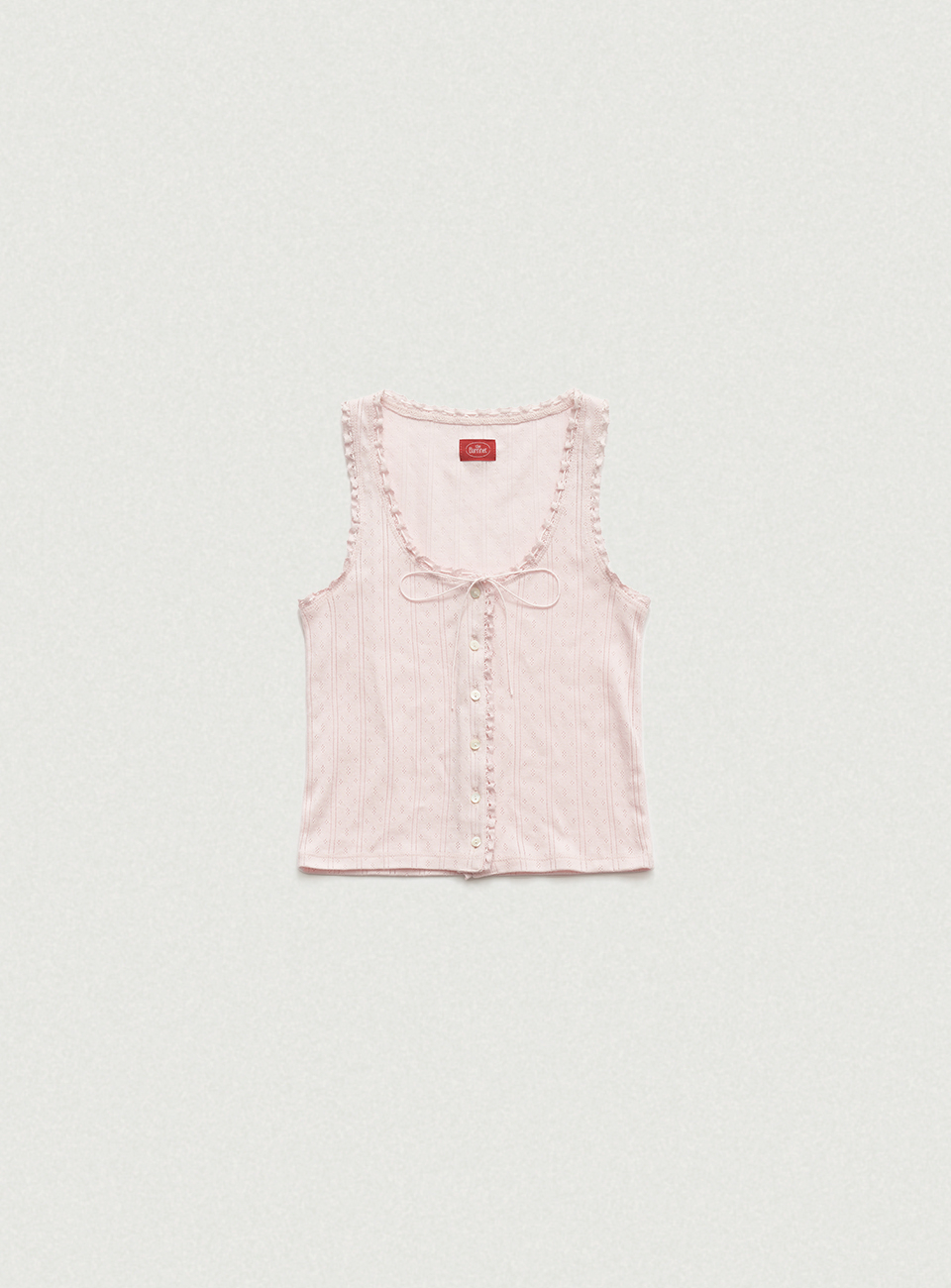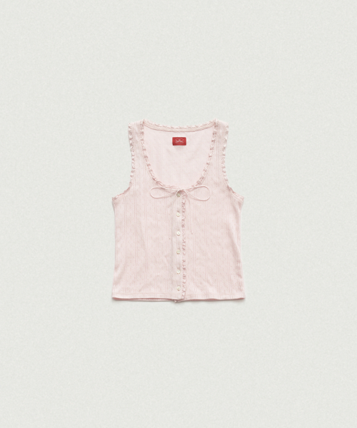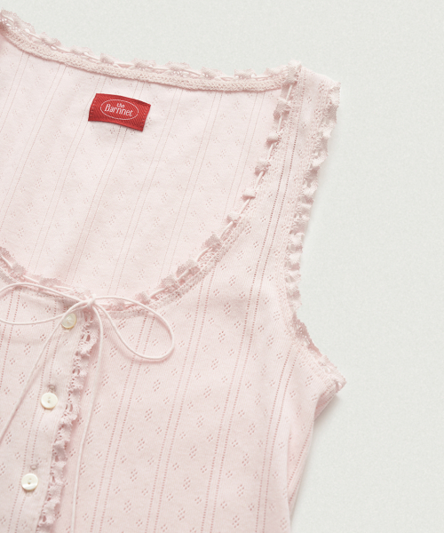 여성스러운 U 라인 넥과 풀 오픈 버튼 디테일의 슬리브리스