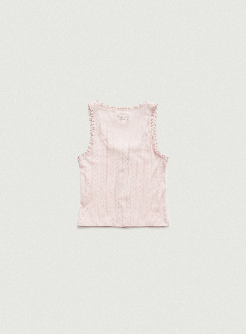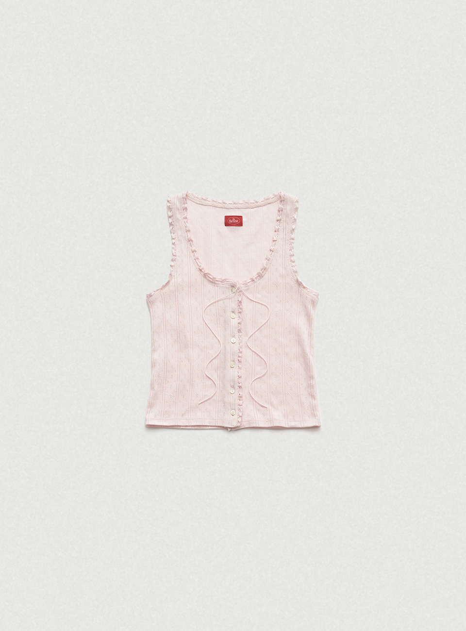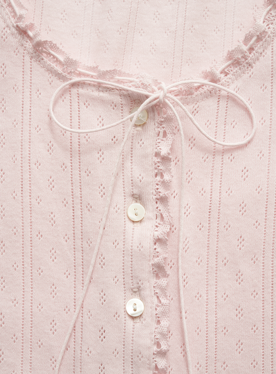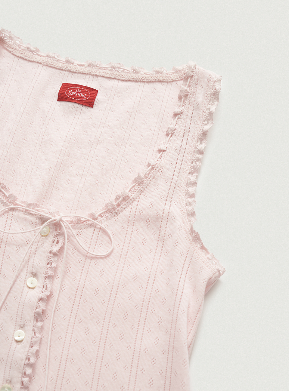 핑크 컬러와 아일렛 텍스처가 돋보이는 코튼 패브릭