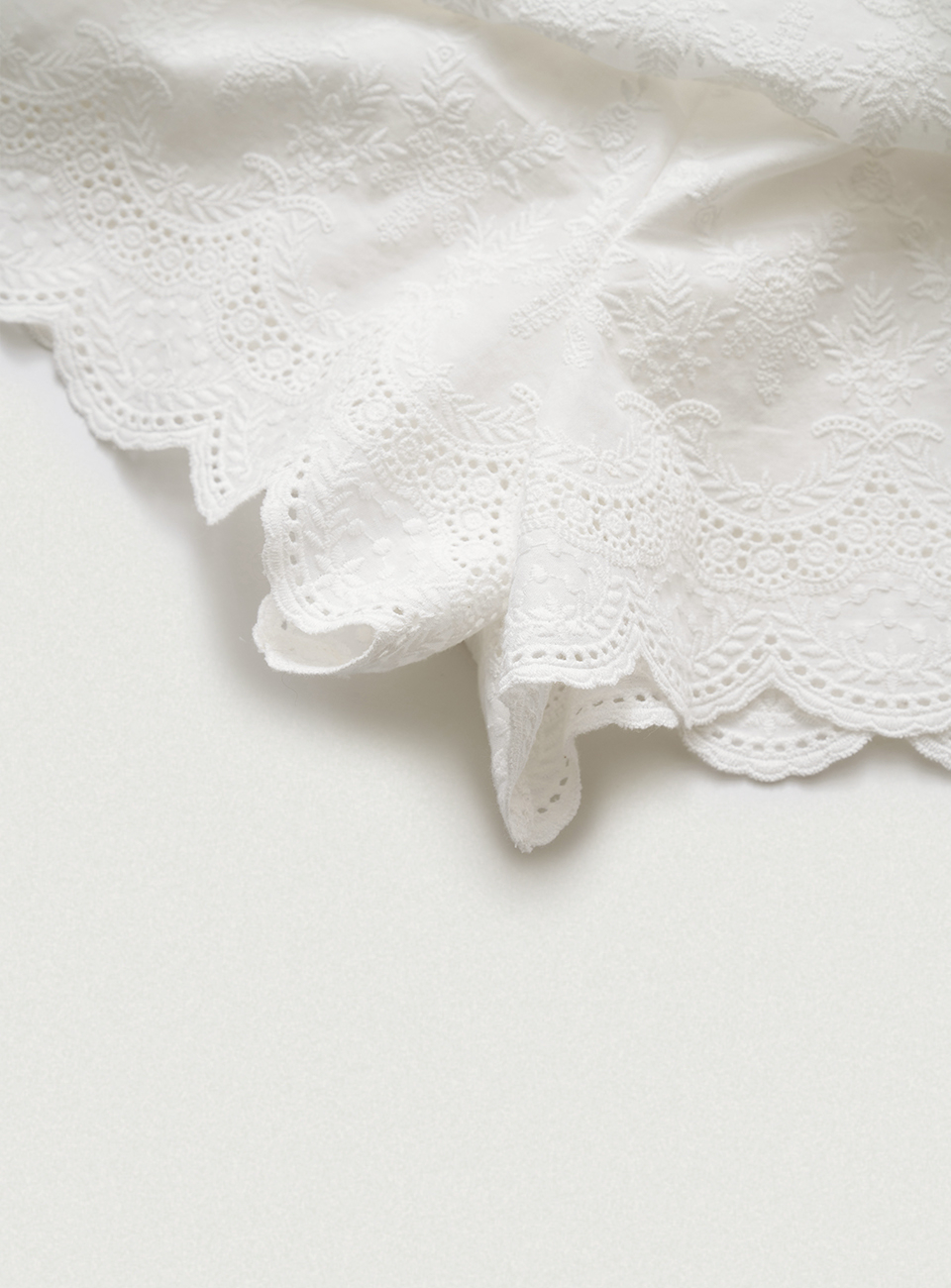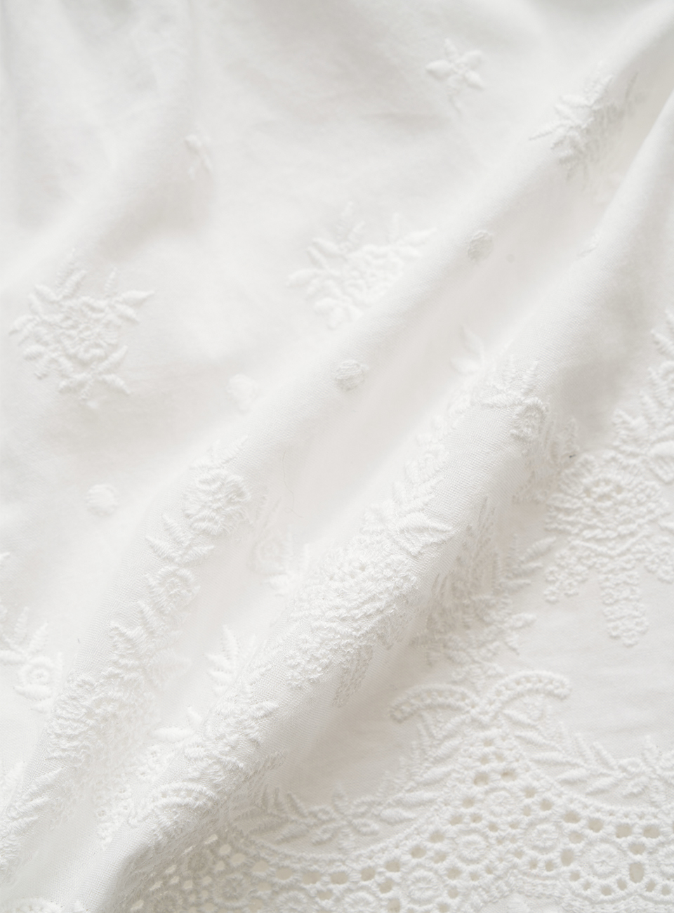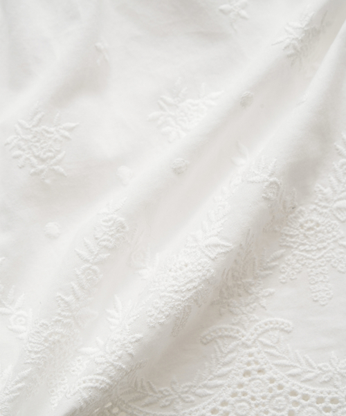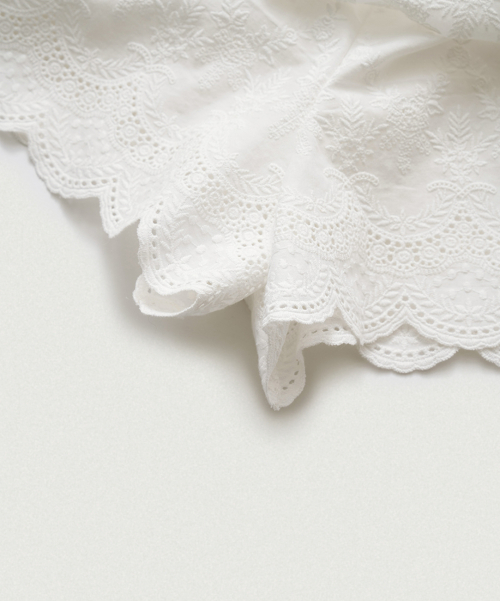 화사한 화이트 컬러와 부드럽고 가벼운 코튼 레이스 패브릭