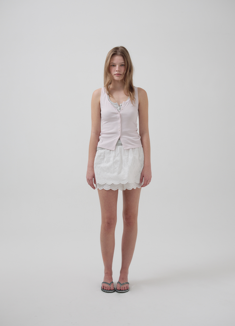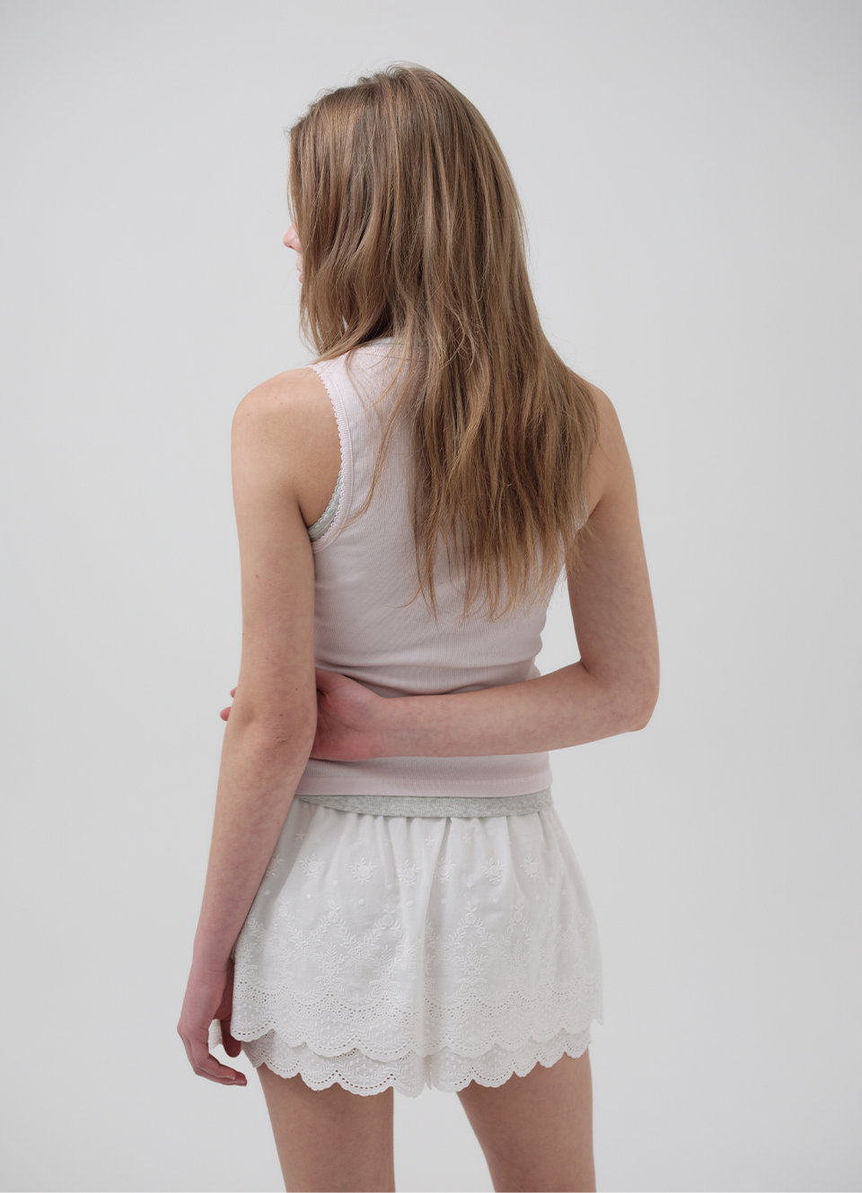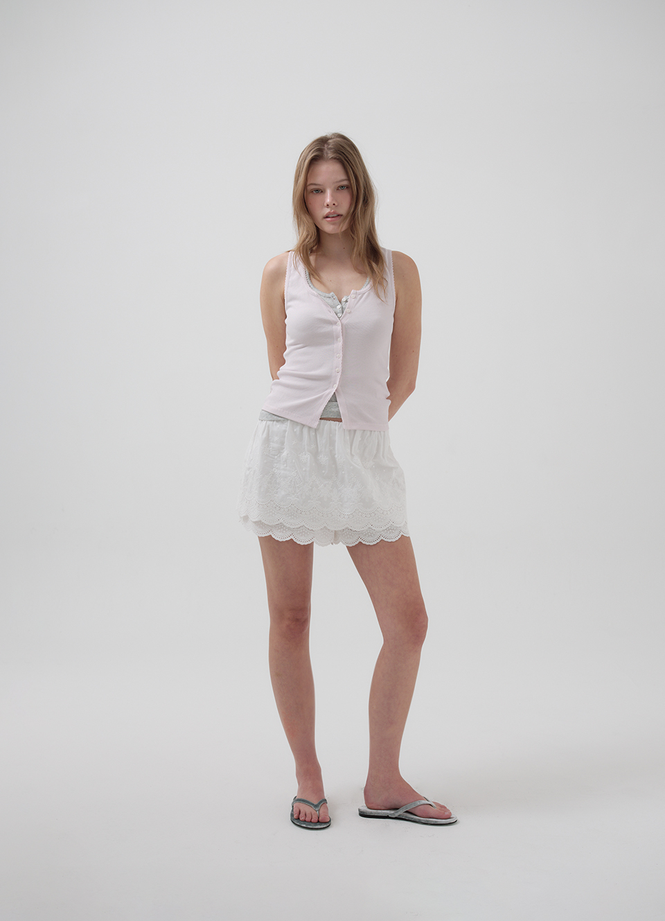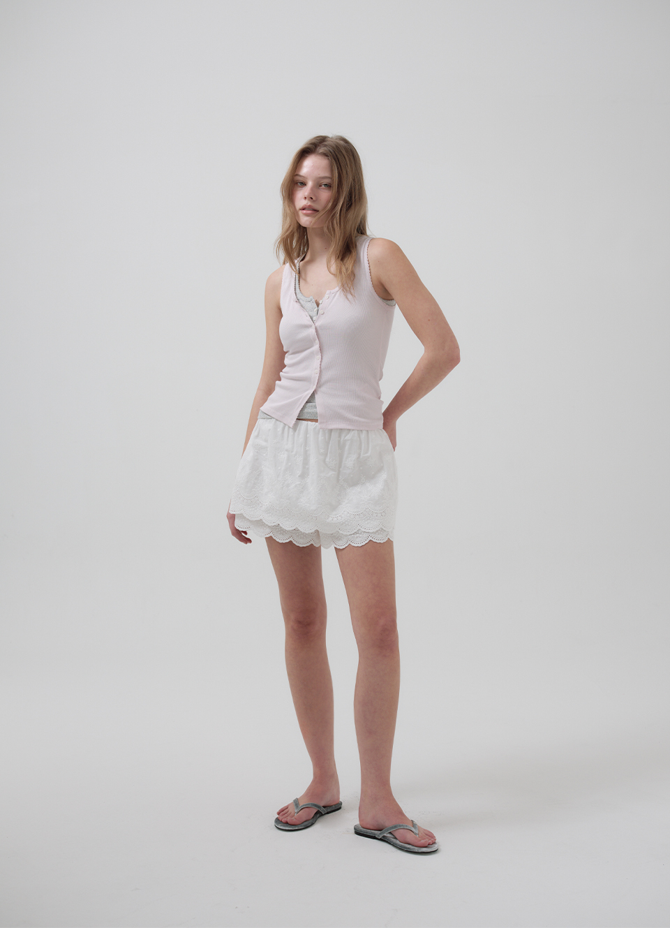 밑단 스캘럽과 허리 밴딩 디테일 포인트