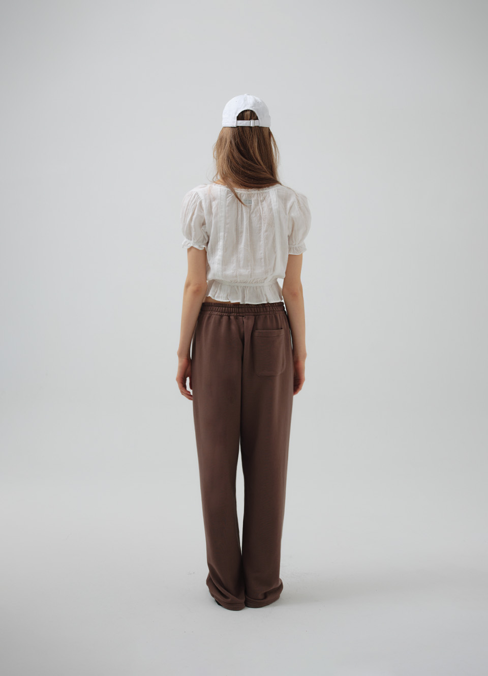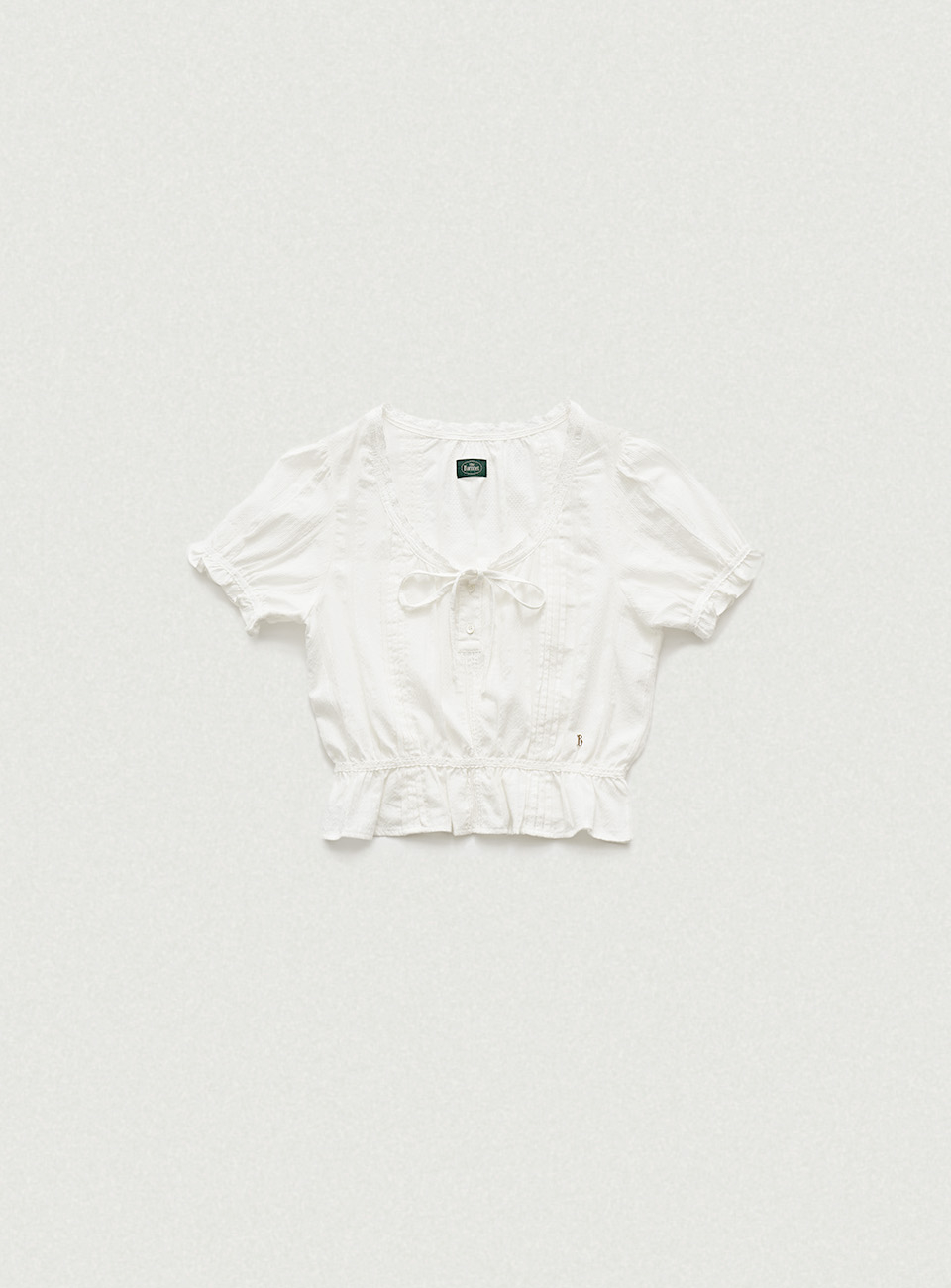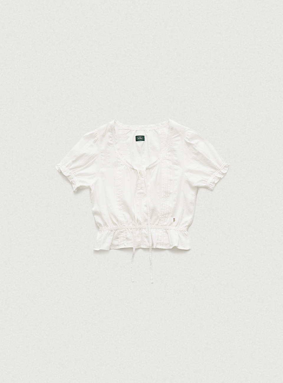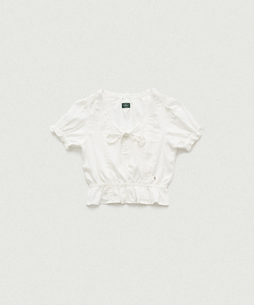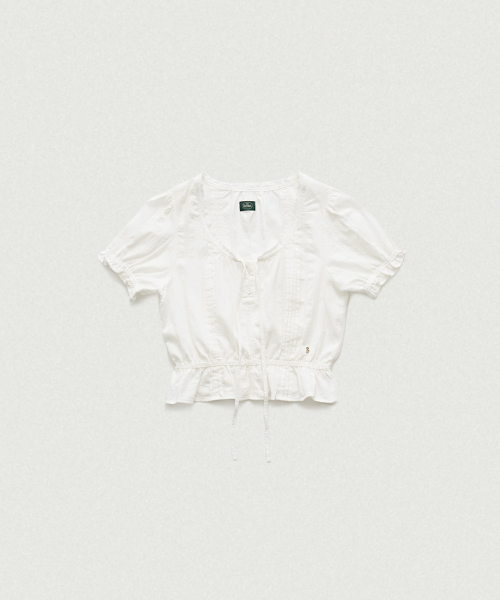 라운드 넥 라인의 크롭 기장 블라우스로