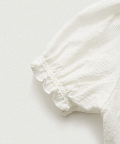 소맷단과 허리라인에 레이스와 러플 디테일이 사랑스러운 아이템
