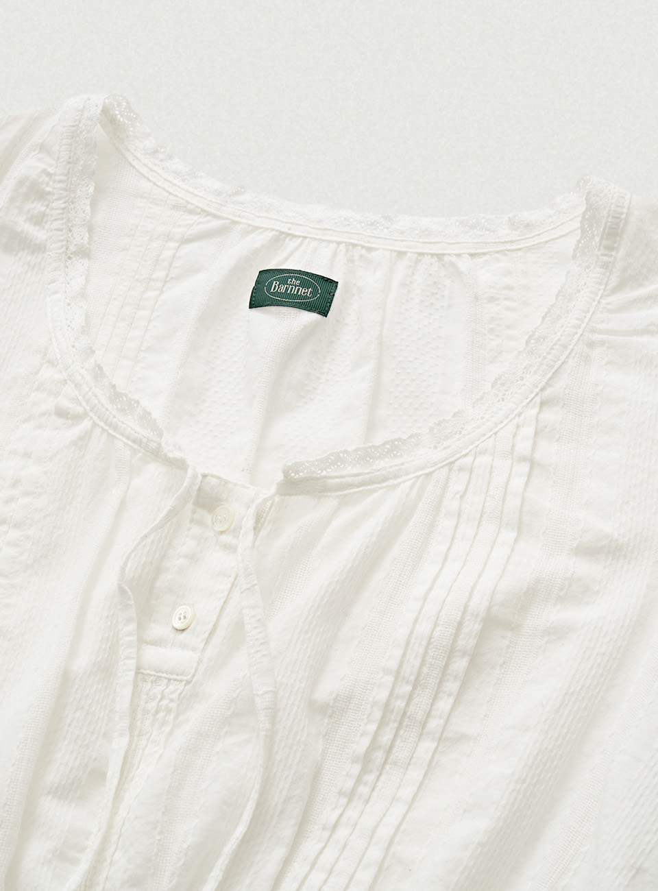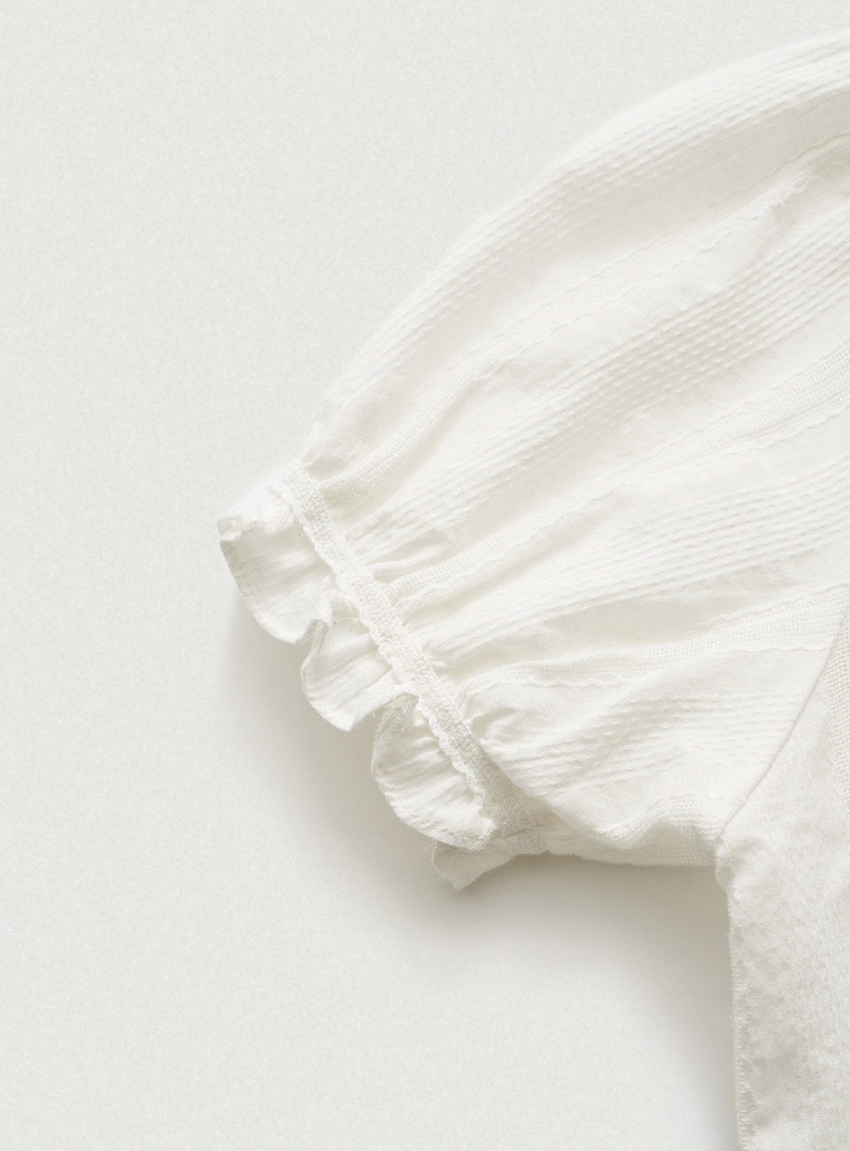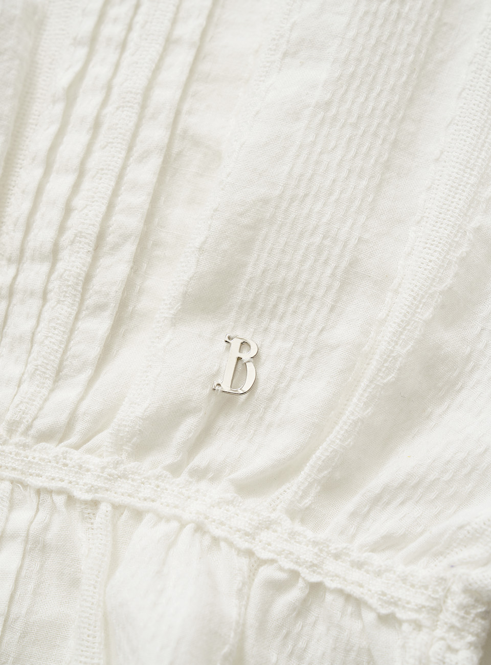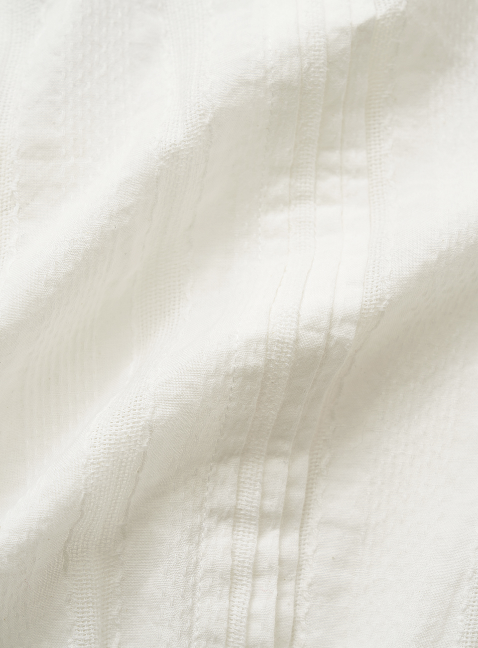 화이트 컬러의 텍스처가 돋보이는 코튼 아일렛 패브릭