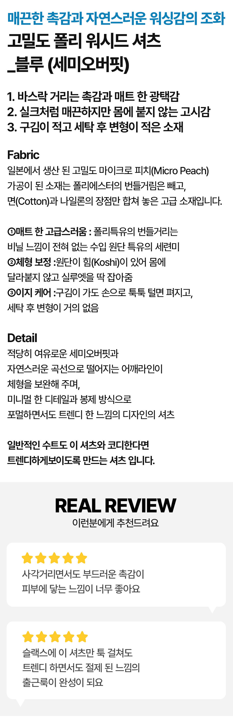 고밀도 폴리 워시드 셔츠 블루 (세미오버핏)_SDSWA62OSL