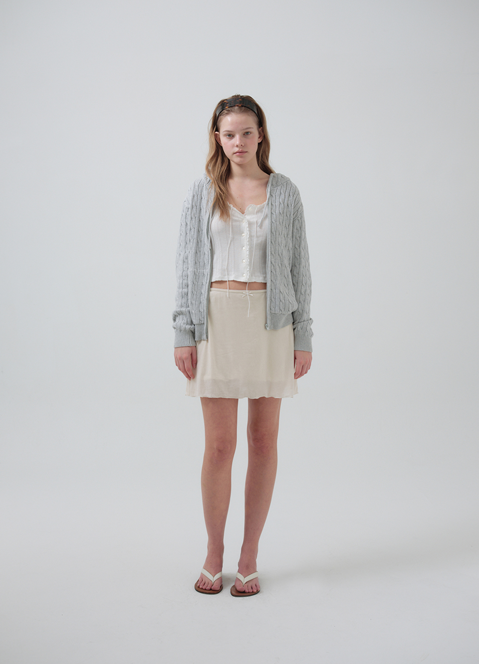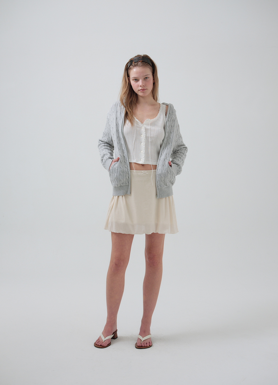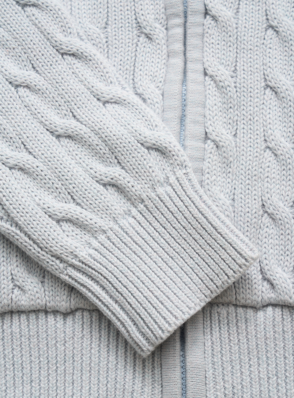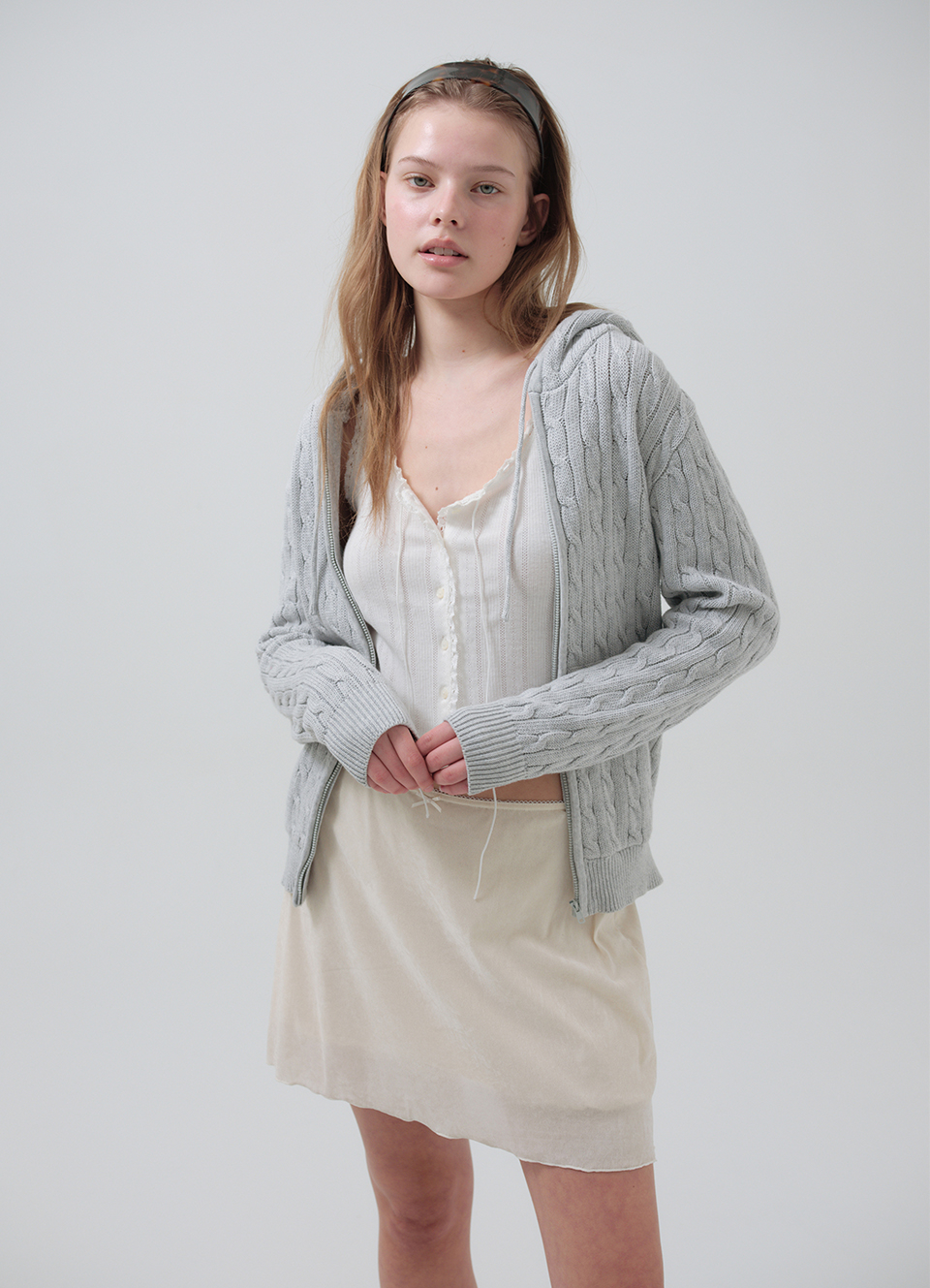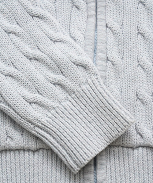 케이블 패턴의 유연한 소재감을 사용하여 데일리하게 연출하기 좋은 디자인