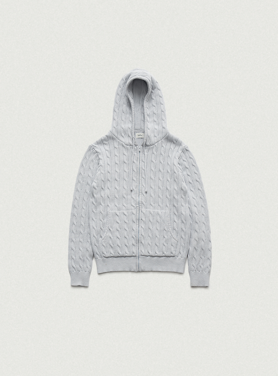원웨이 지퍼로 오픈 클로징 가능한 니트 후드 집업 아이템
