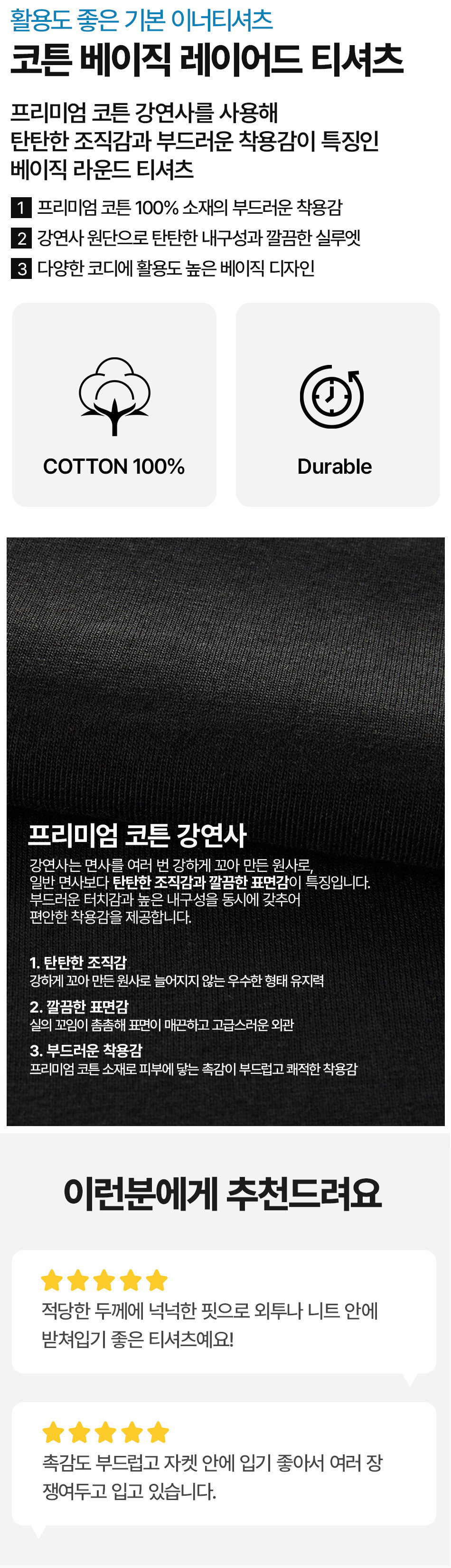 DIEMS 코튼 베이직 레이어드 티셔츠_블랙 (클래식핏)_DTSUZ05CSB