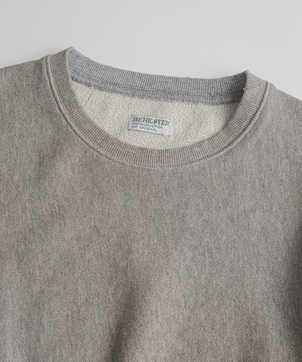 DISTRESSED REVERSE WEAVE SWEAT SHIRTS는 빈티지 스웻셔츠에서 발견되는 디테일들을 조화시켜, 비헤비어의 시선으로 재해석한 스웻 셔츠입니다