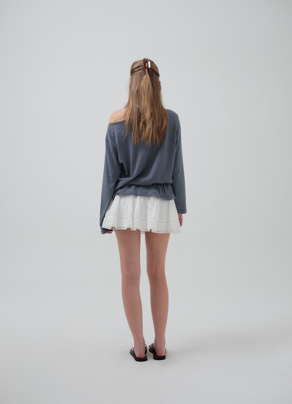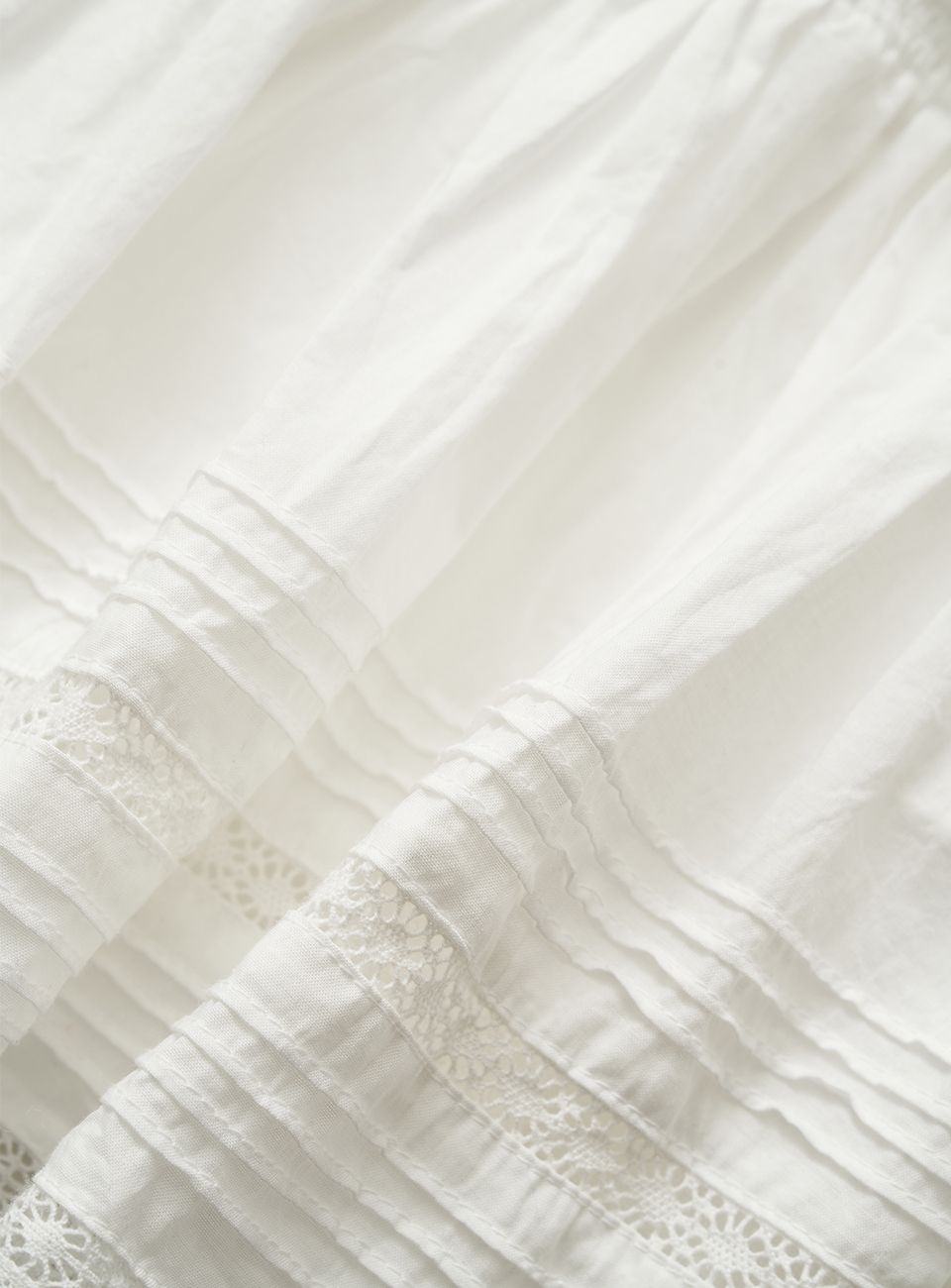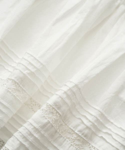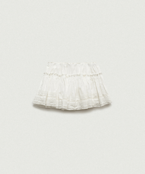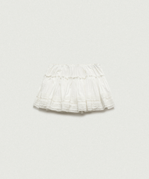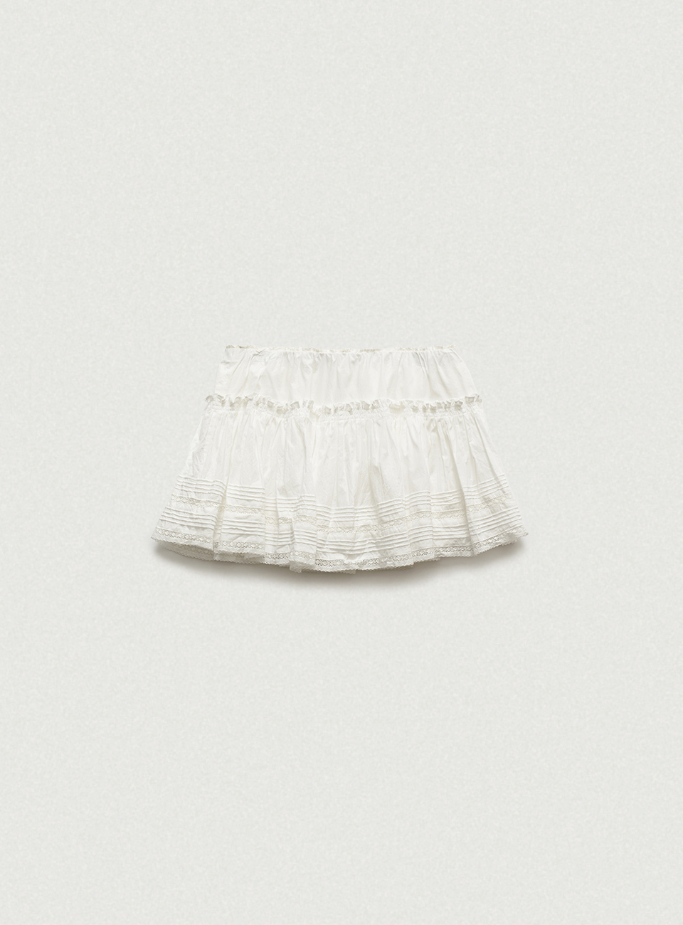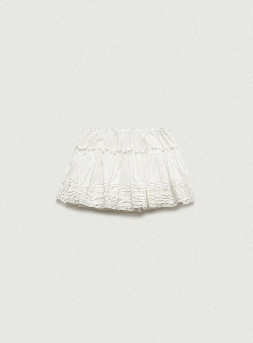 레이스와 핀턱 디테일이 더해진 로우라이즈 미니 스커트