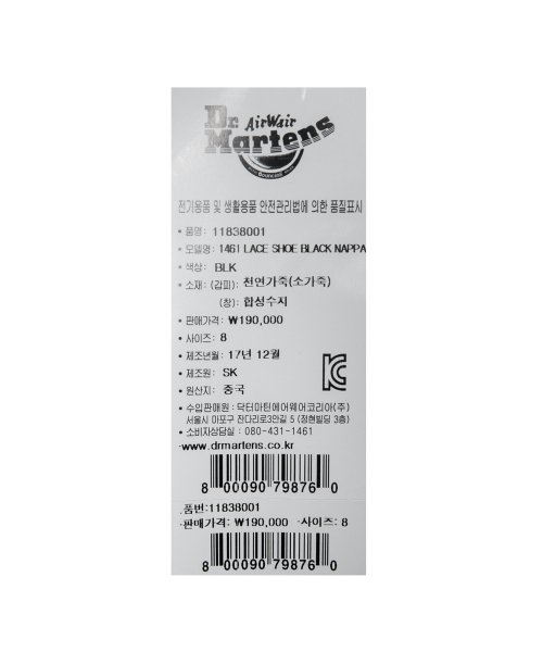 1461 3홀 블랙 나파 / 11838001