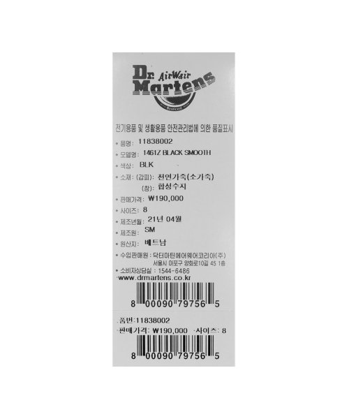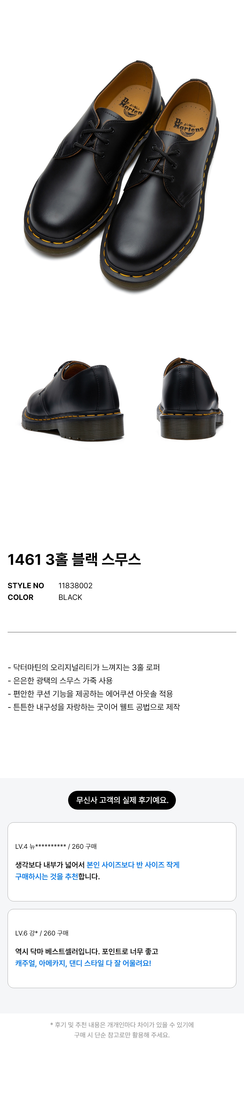 1461 3홀 벡스 블랙 스무스 / 21084001