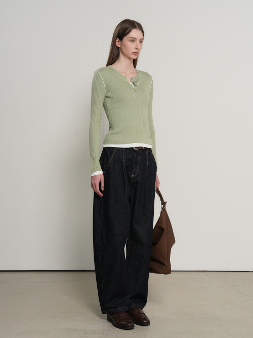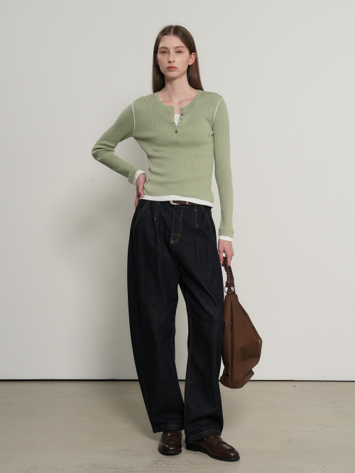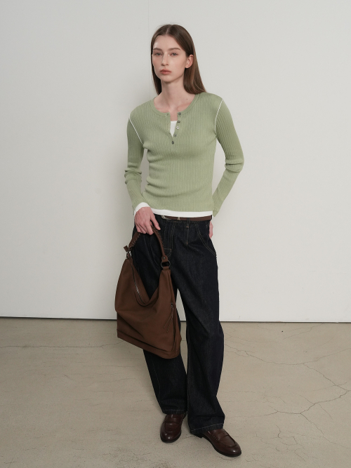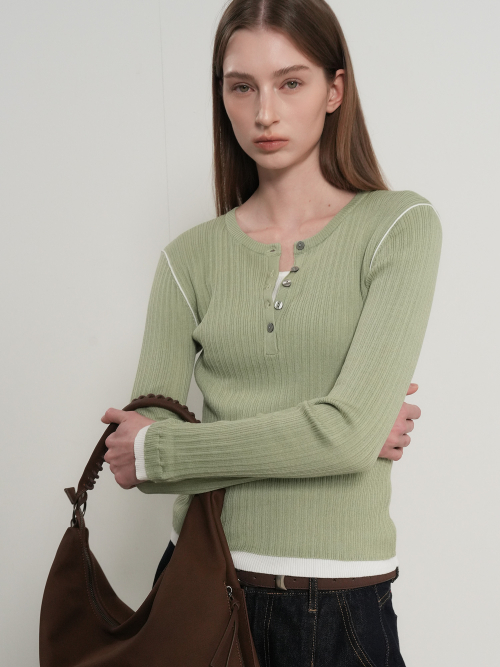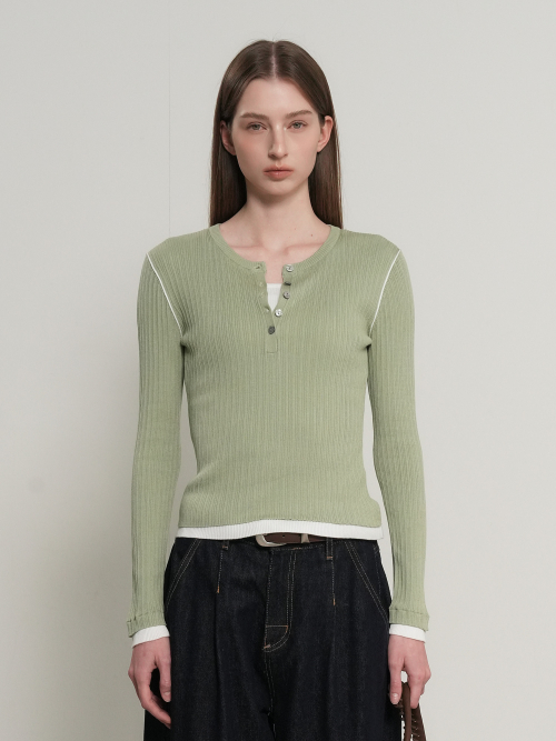헨리넥 레이어드 니트 풀오버 [PISTACHIO] / GF1LKP507