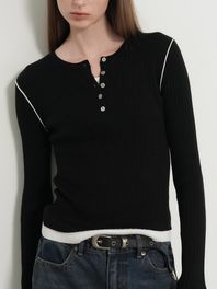 헨리넥 레이어드 니트 풀오버 [BLACK] / GF1LKP507
