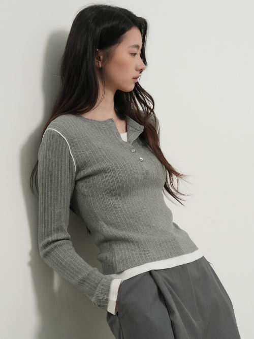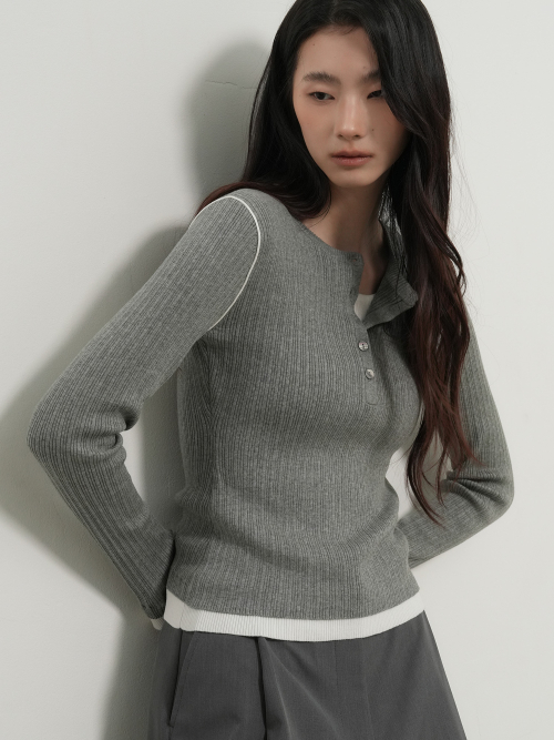 헨리넥 레이어드 니트 풀오버 [GREY] / GF1LKP507