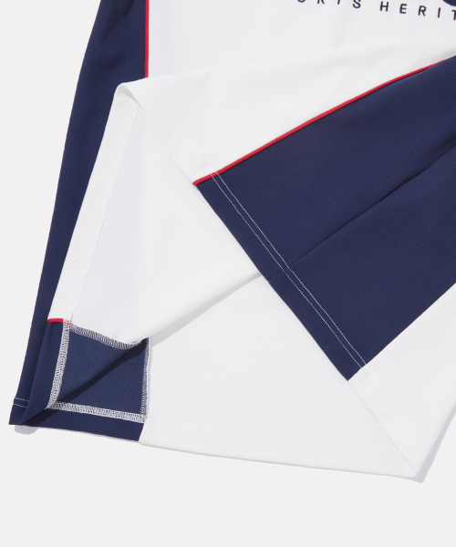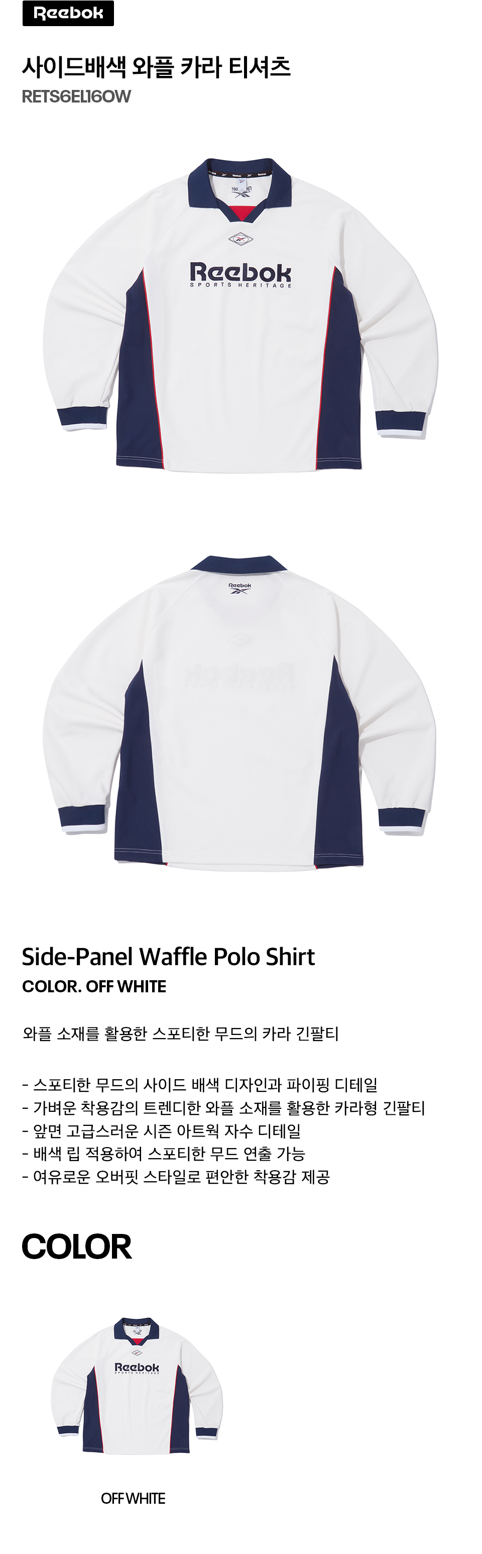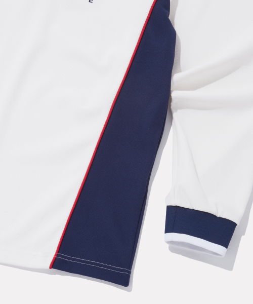 사이드배색 와플 카라 티셔츠 - 오프 화이트
