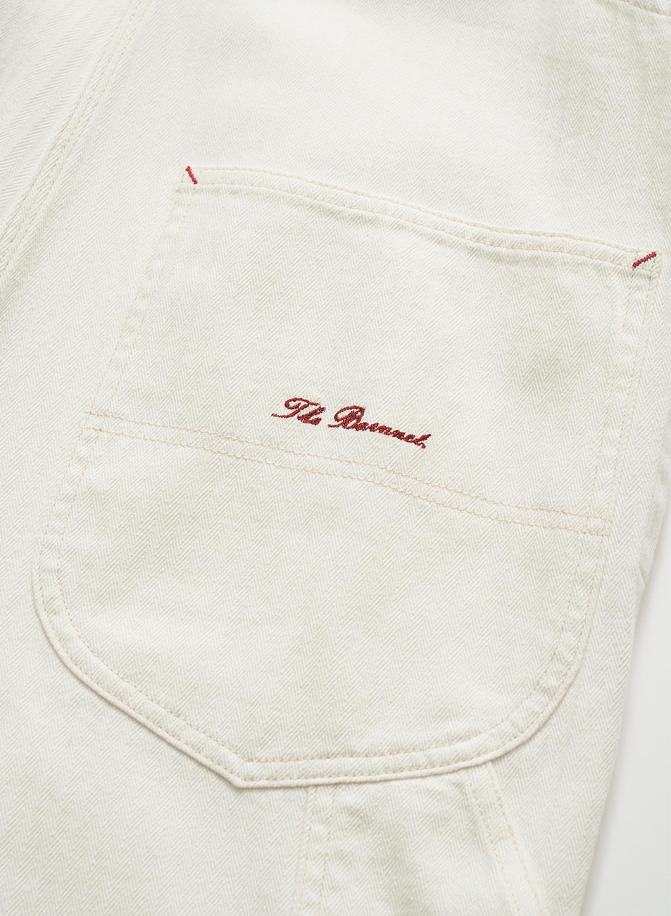 부드러운 아이보리 컬러와 은은한 헤링본 조직감이 돋보이는 코튼 패브릭