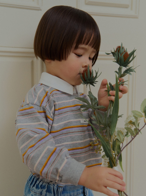 STRIPE COLLAR TEE_GRAY