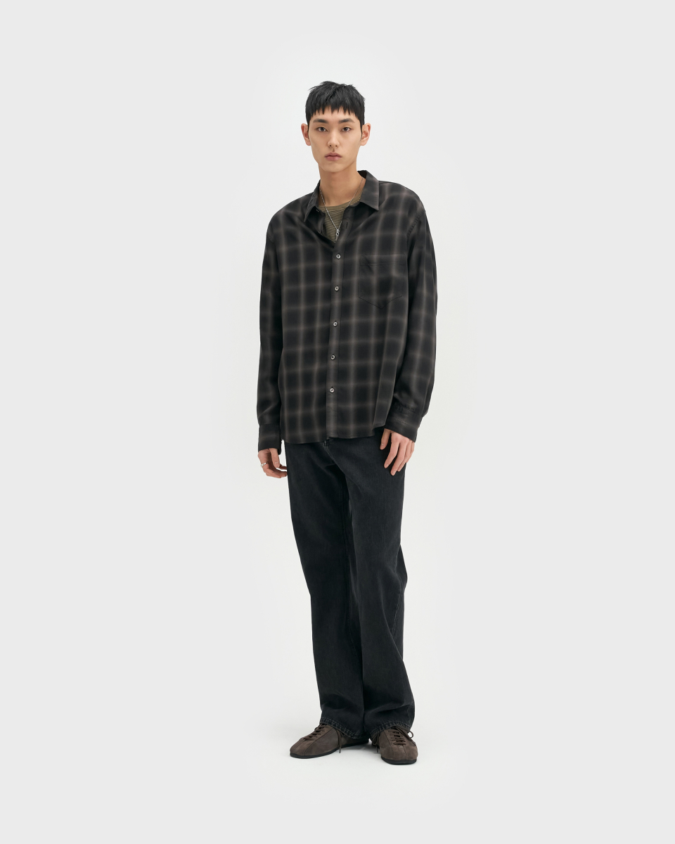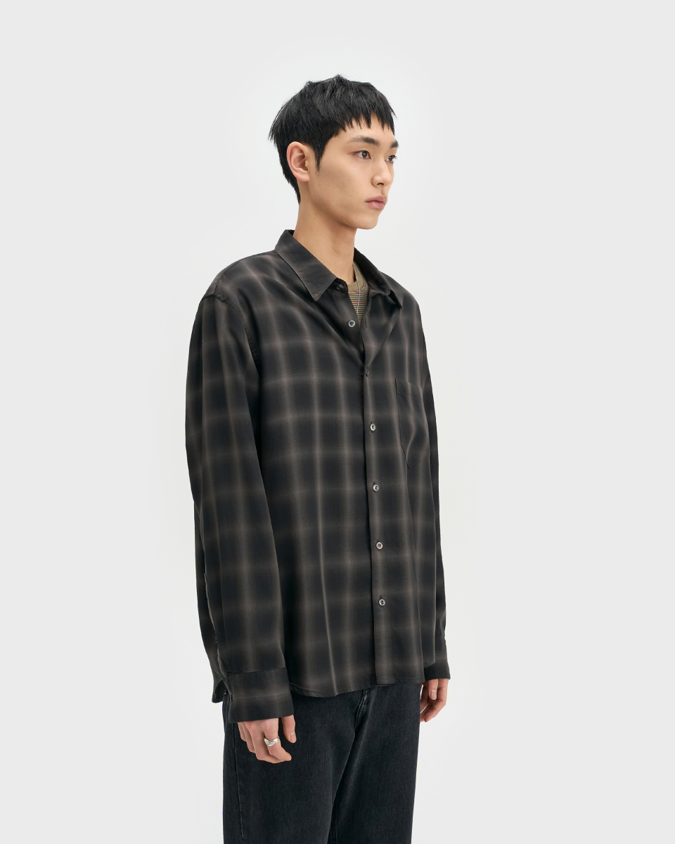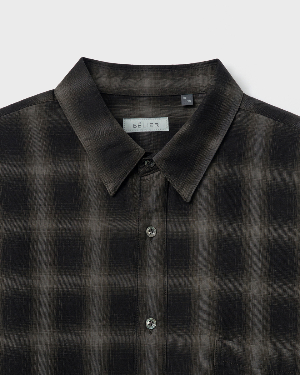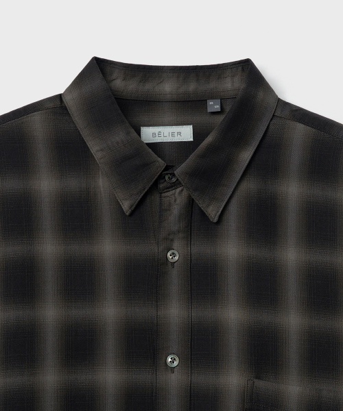 일본 AAAT社의 고급스러운 색 조합의 옴브레 체크 패턴 원단을 수입하여 인치당 15땀수로 단단하게 제작한 릴렉스드 핏의 프리미엄 셔츠.