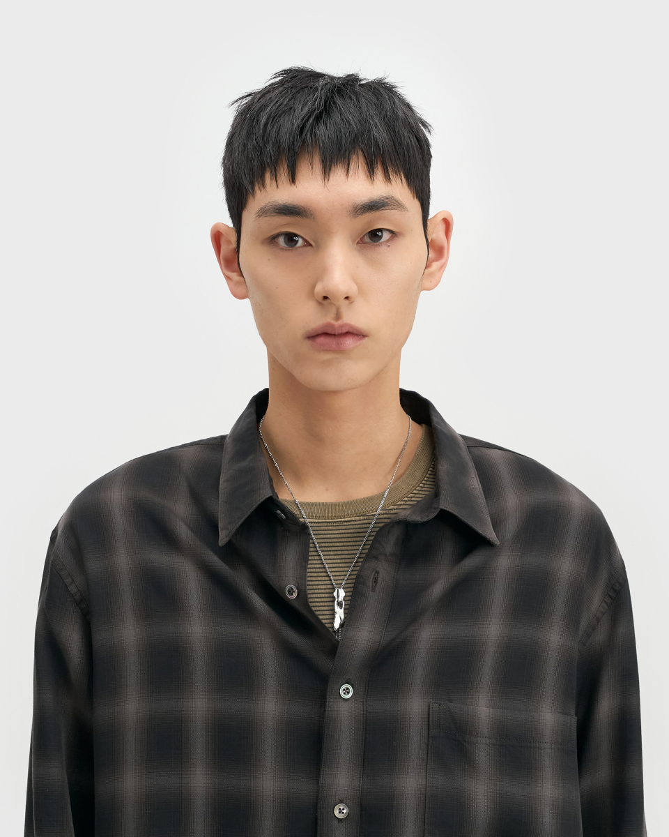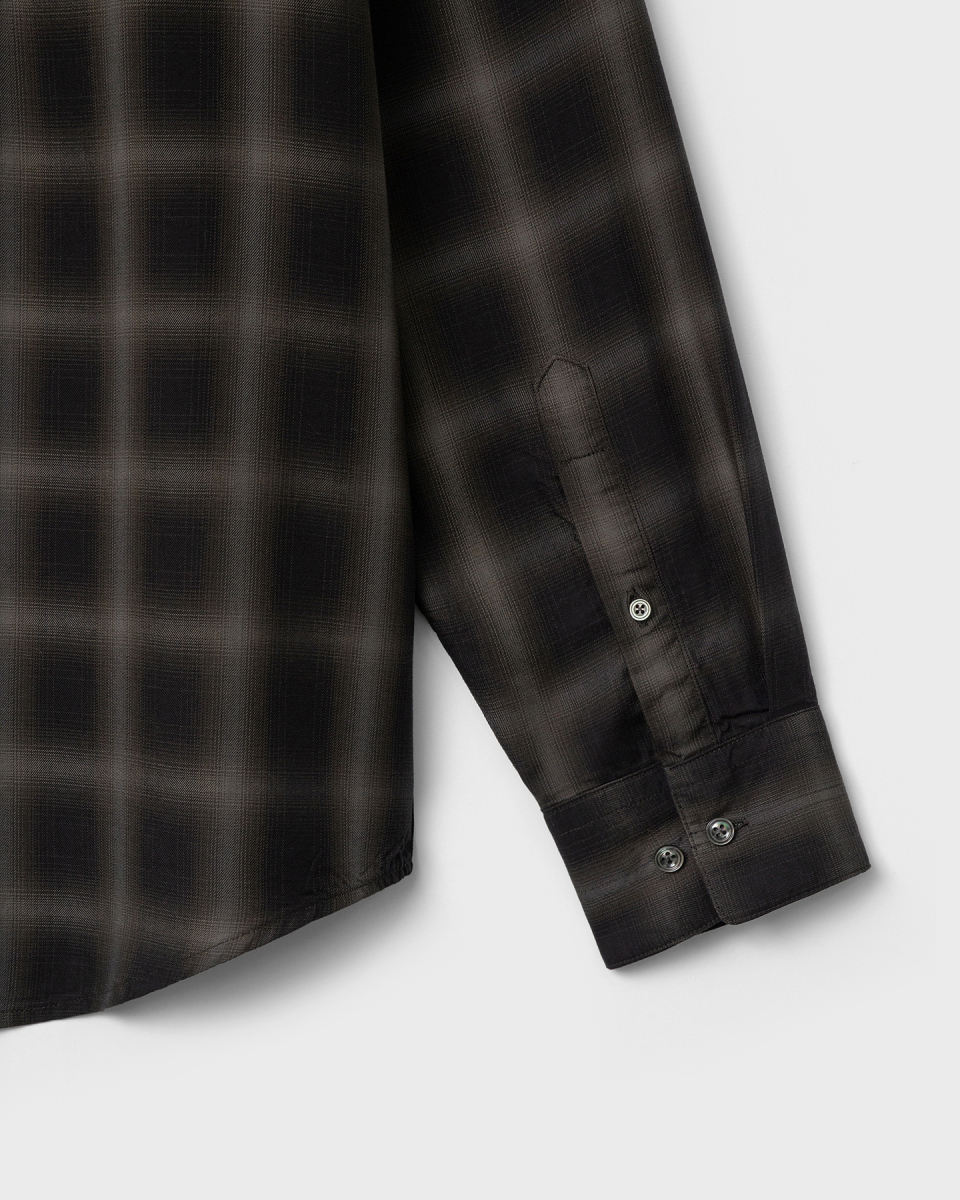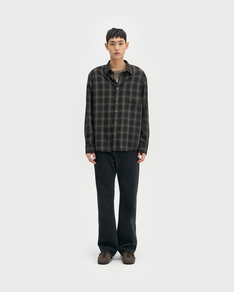 일본 AAAT社의 고급스러운 색 조합의 옴브레 체크 패턴 원단을 수입하여 인치당 15땀수로 단단하게 제작한 릴렉스드 핏의 프리미엄 셔츠.