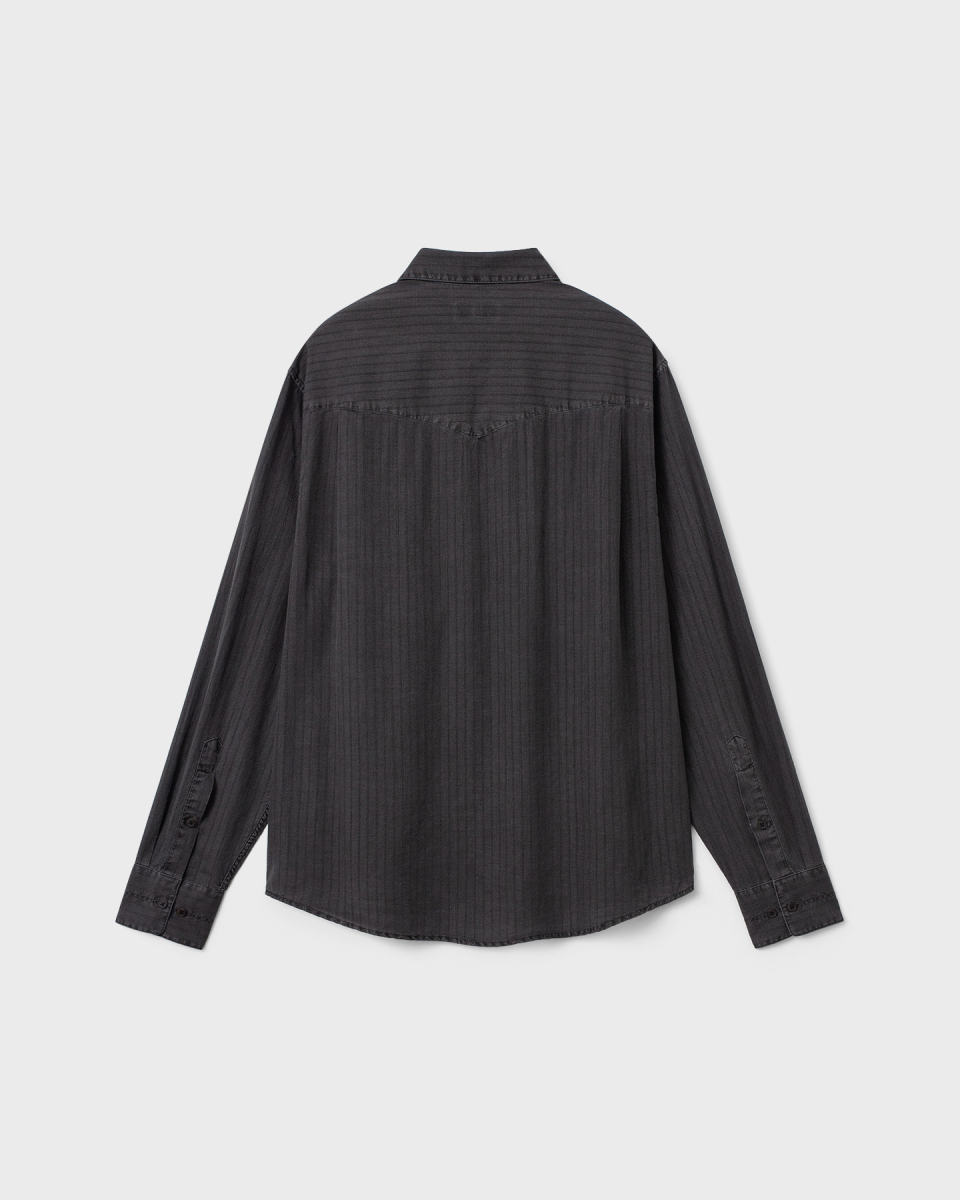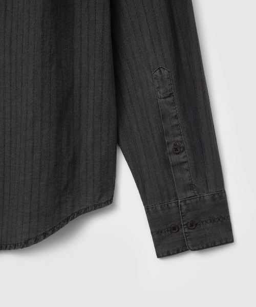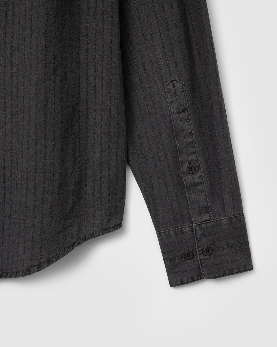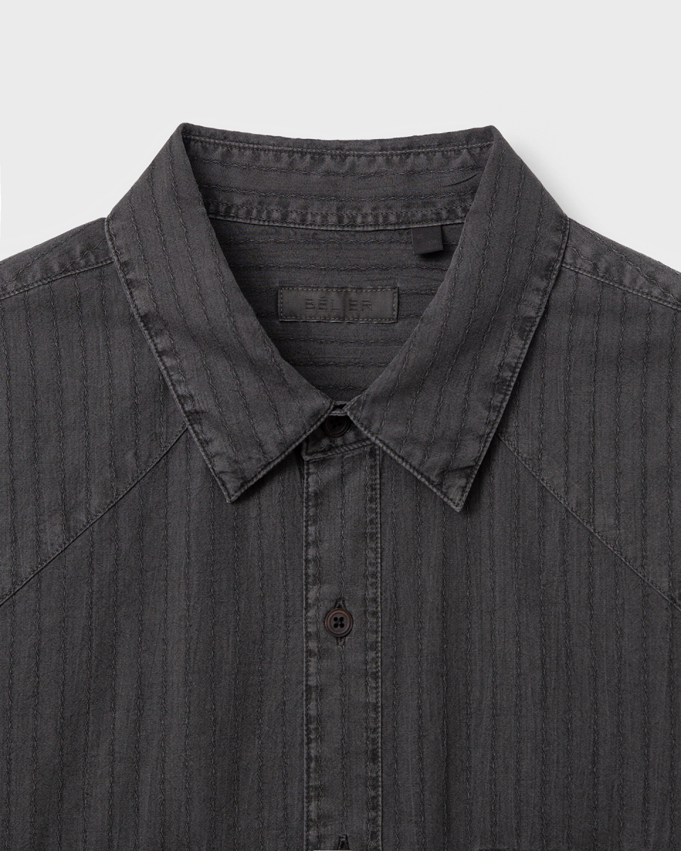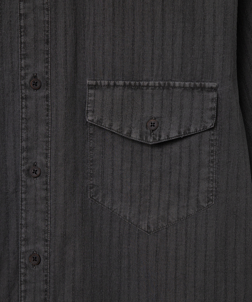 일본 SHUTTLE NOTES社의 고급 자카드 스트라이프 원단을 사용해 인치당 15땀수로 단단하게 제작된 레귤러 핏의 프리미엄 웨스턴 셔츠.
