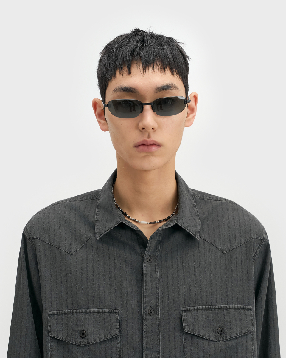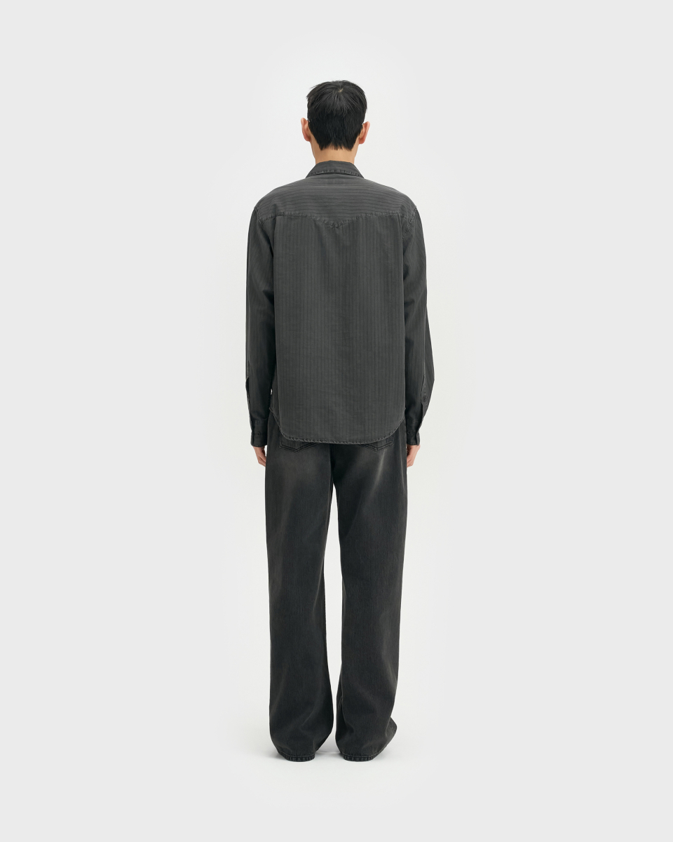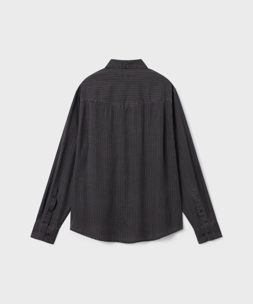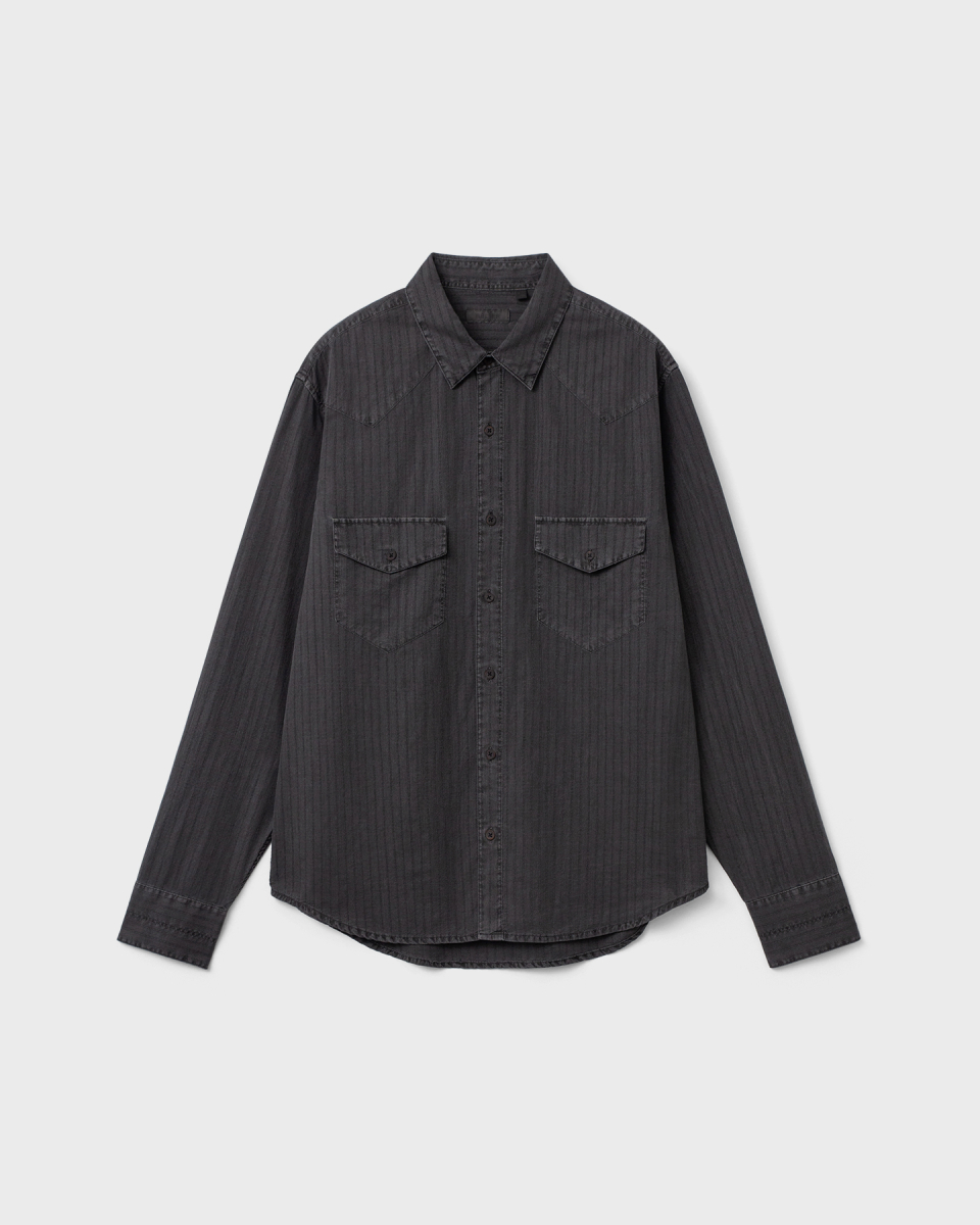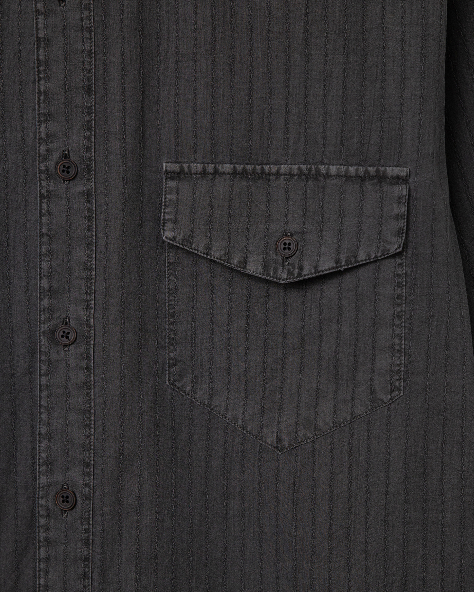 일본 SHUTTLE NOTES社의 고급 자카드 스트라이프 원단을 사용해 인치당 15땀수로 단단하게 제작된 레귤러 핏의 프리미엄 웨스턴 셔츠.