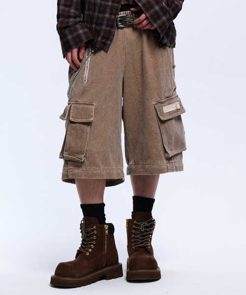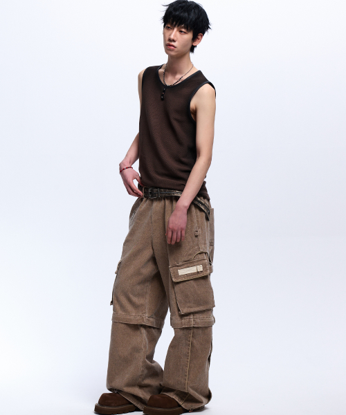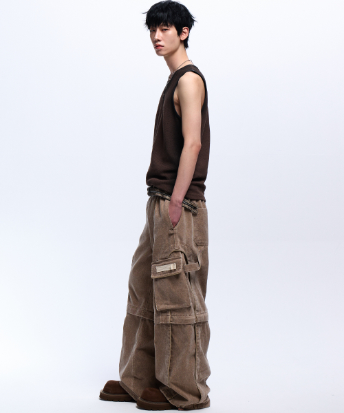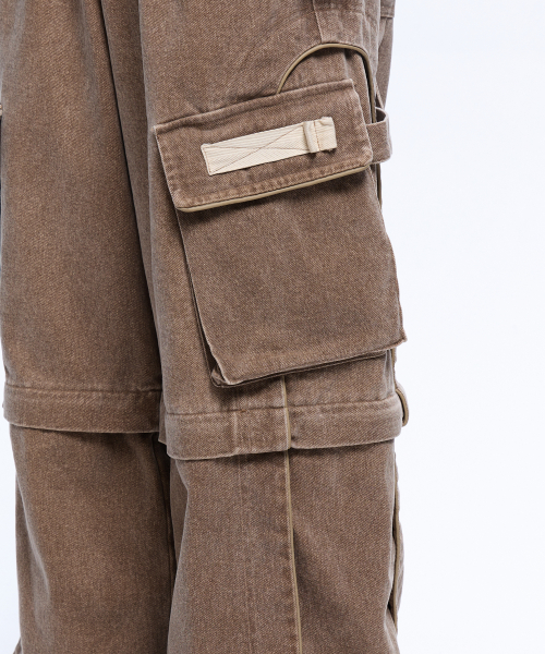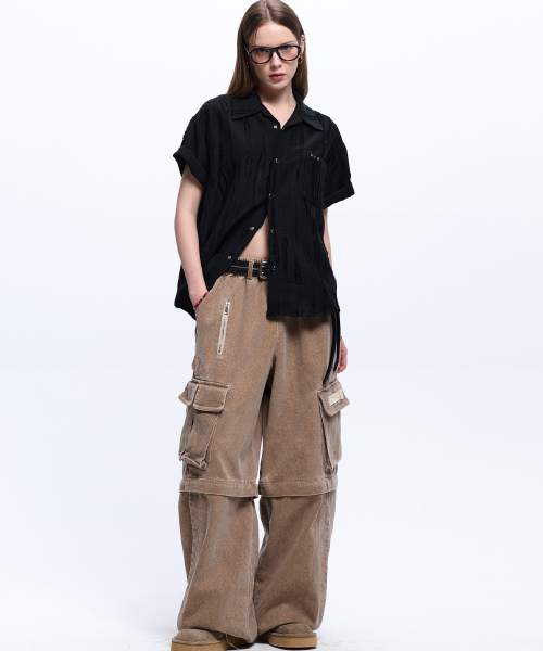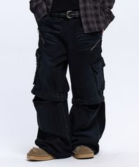 CONVERTIBLE DESTROYED CARGO DENIM PANTS - BLACK