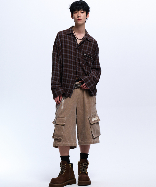 STRIPE MIXED CARGO DENIM PANTS - BLACK