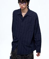 RIVET WRINKLE STRIPE SHIRT - NAVY