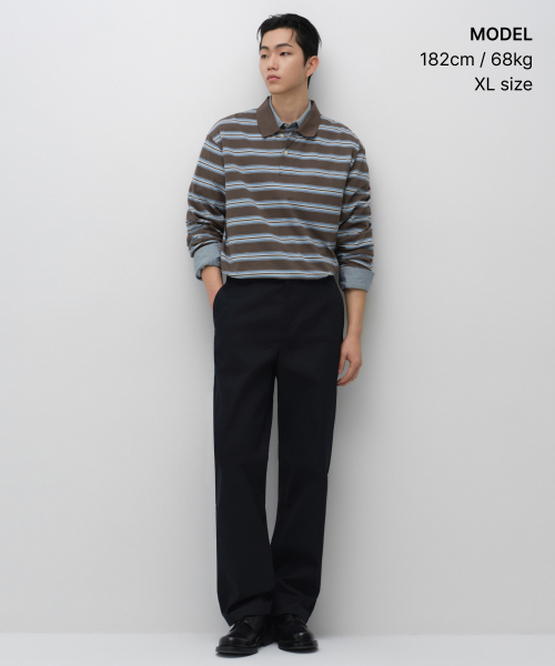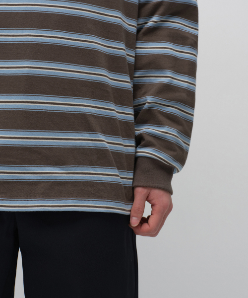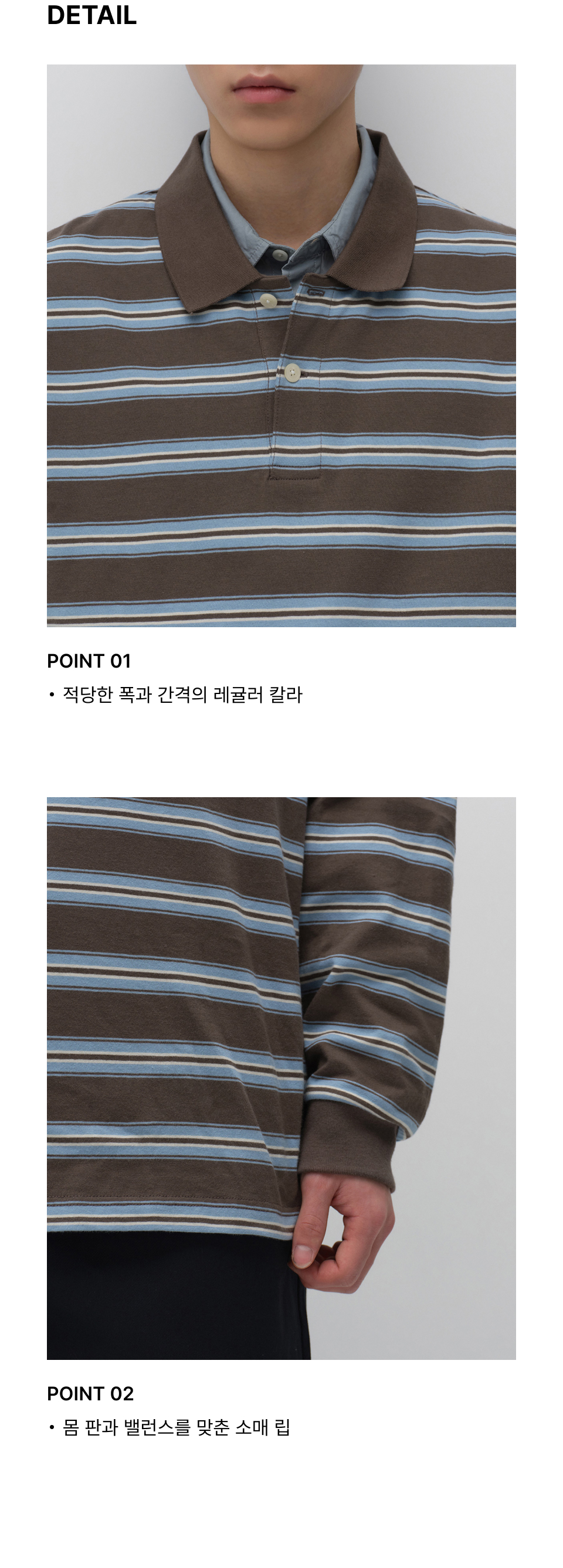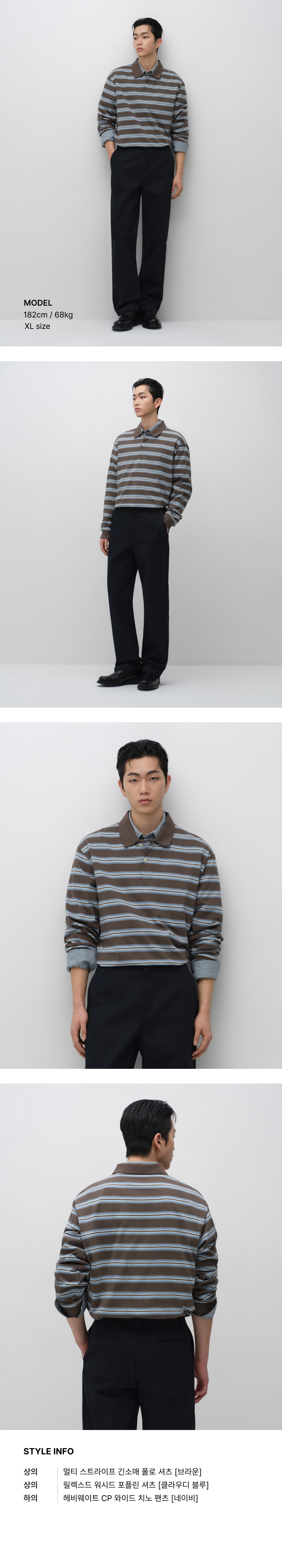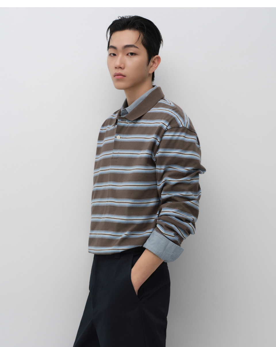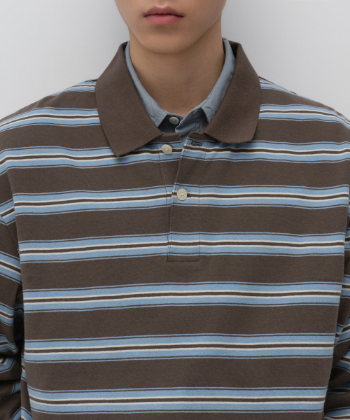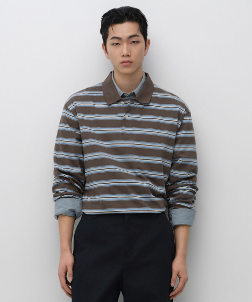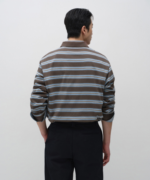 멀티 스트라이프 긴소매 폴로 셔츠 [브라운]