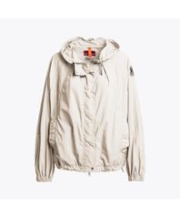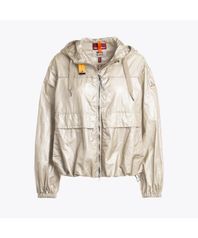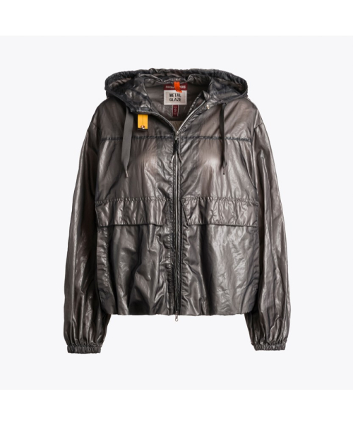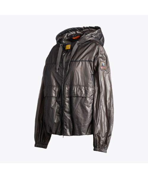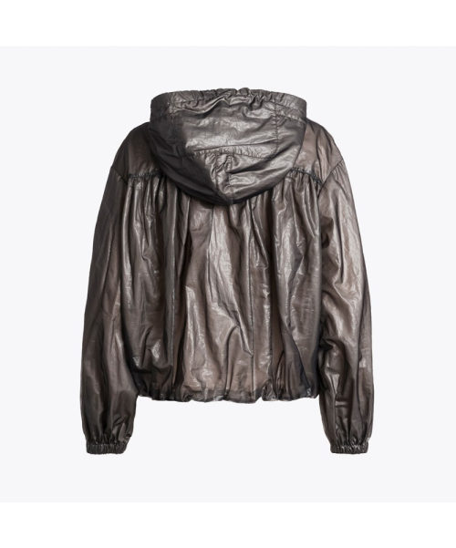 나일론 오간자가 적용되어 은은한 광택감이 특징인 파라점퍼스의 후드 봄버 자켓