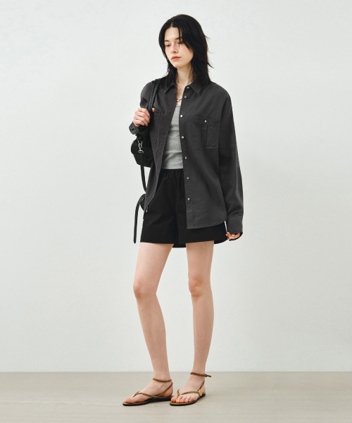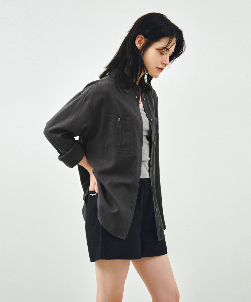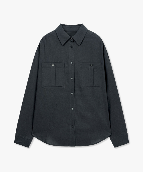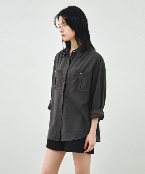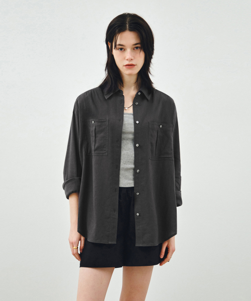투포켓 셔링 루즈핏 린넨 셔츠 차콜 MDSH030CHARCOAL