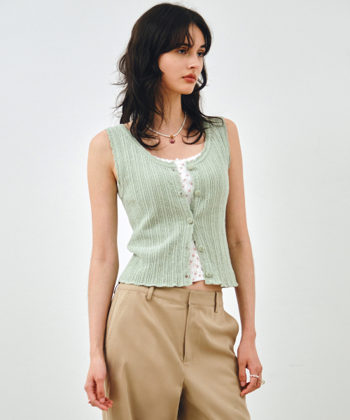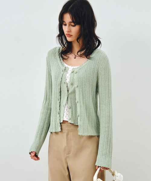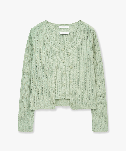 [SET] 펀칭 니트 가디건 & 슬리브리스 민트그린 MDCD059MINTGREEN