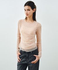 사이드 셔링 플라워 매쉬 롱 슬리브 베이지 MDTS061FLOWERBEIGE