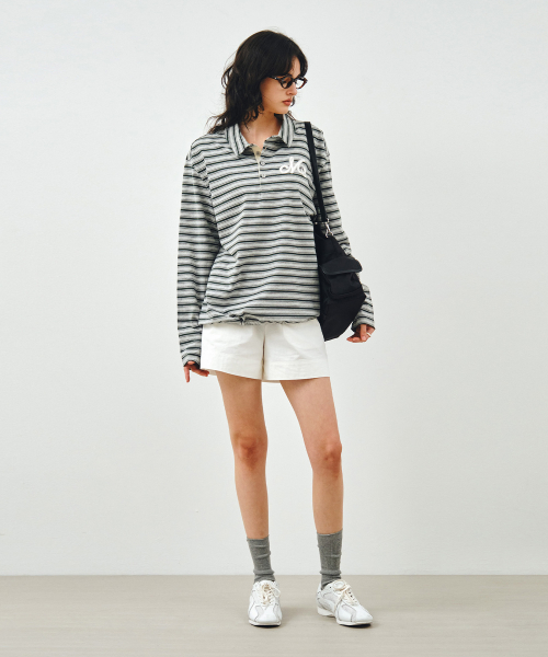 스트라이프 카라 럭비 티셔츠 그레이 MDTS100GRAY