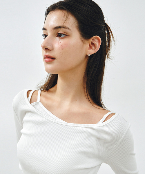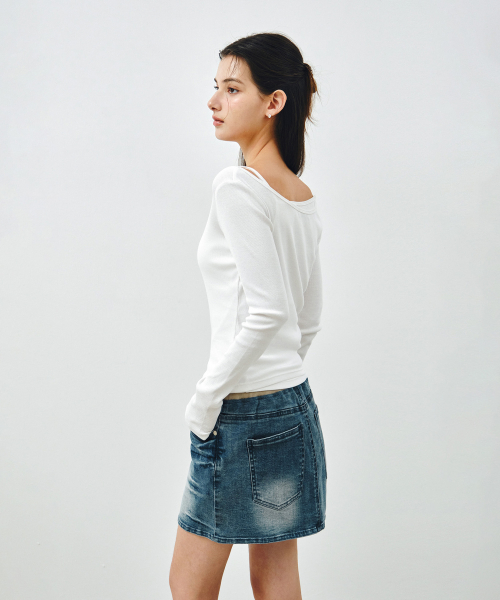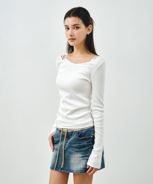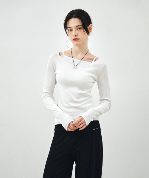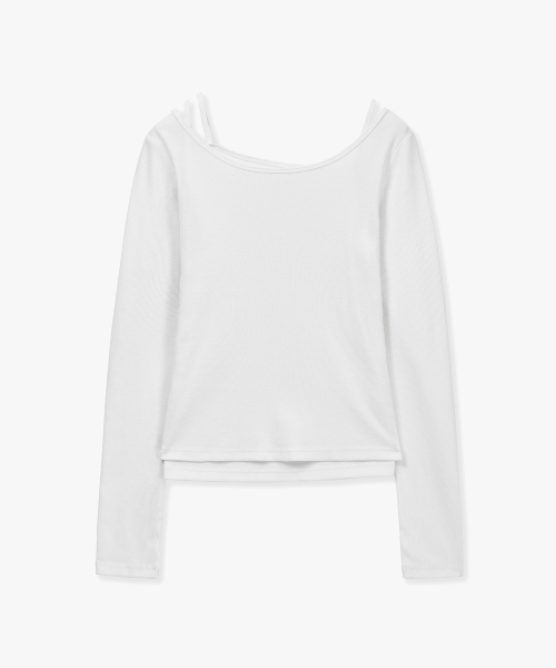 [SET] 보트넥 레이어드 골지 티셔츠 화이트 MDTS087WHITE