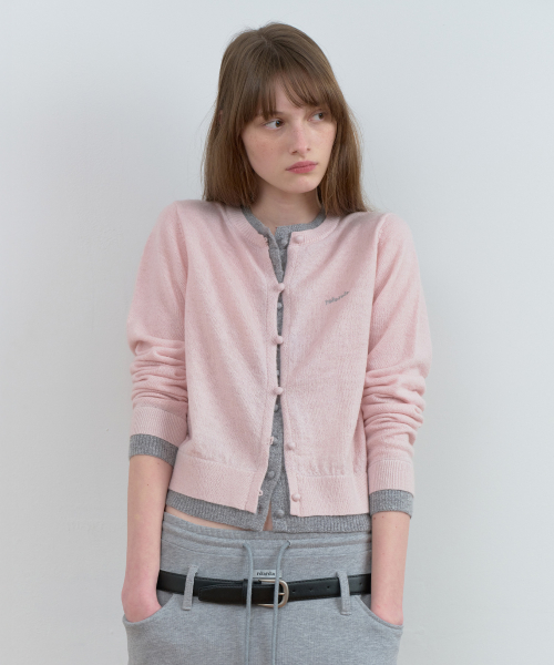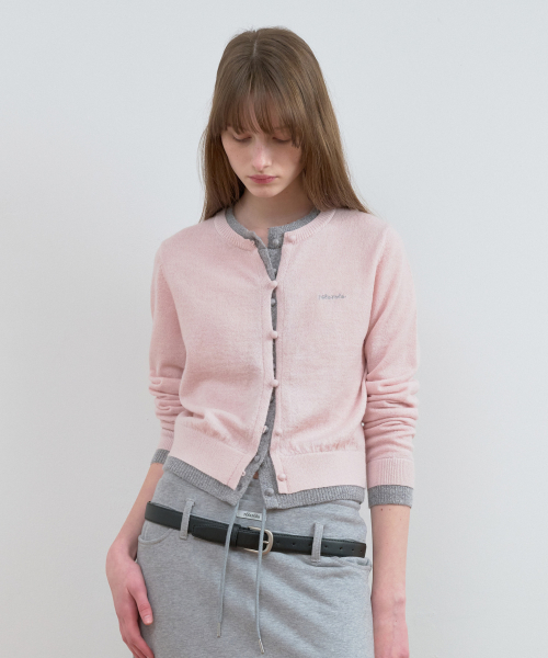 LAYERED KNIT CARDIGAN GY+PK