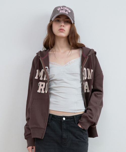 PATCHWORK CAMPUS HOOD ZIP-UP BROWN