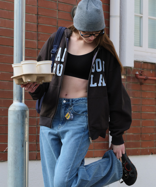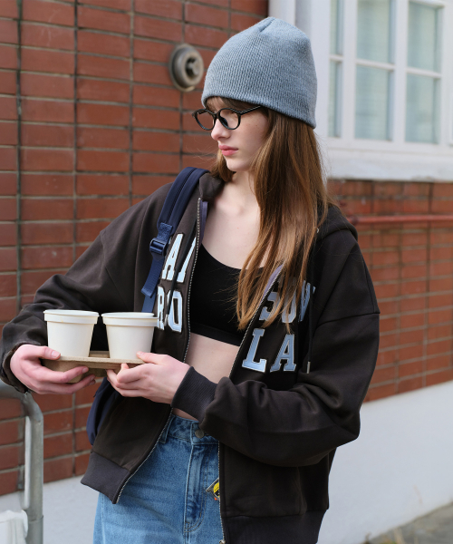 PATCHWORK CAMPUS HOOD ZIP-UP CHARCOAL