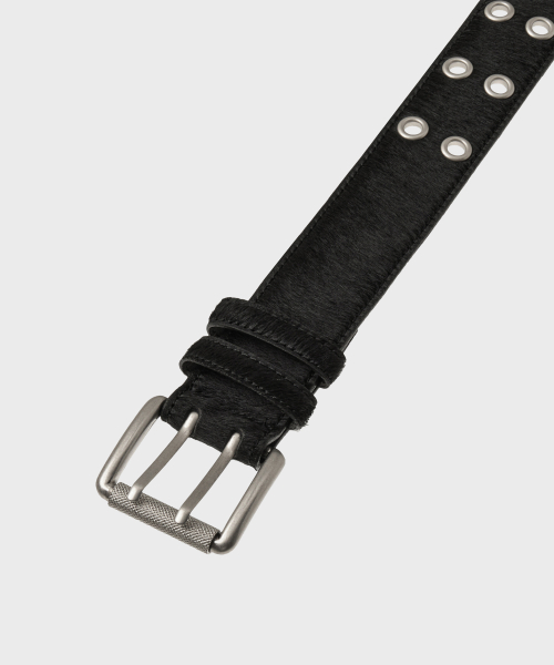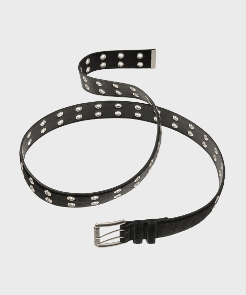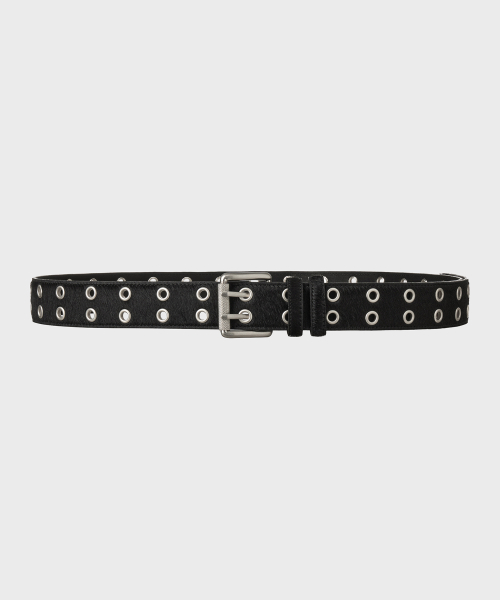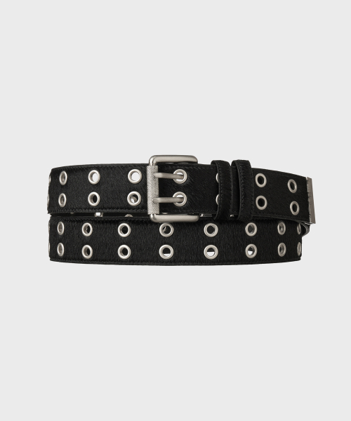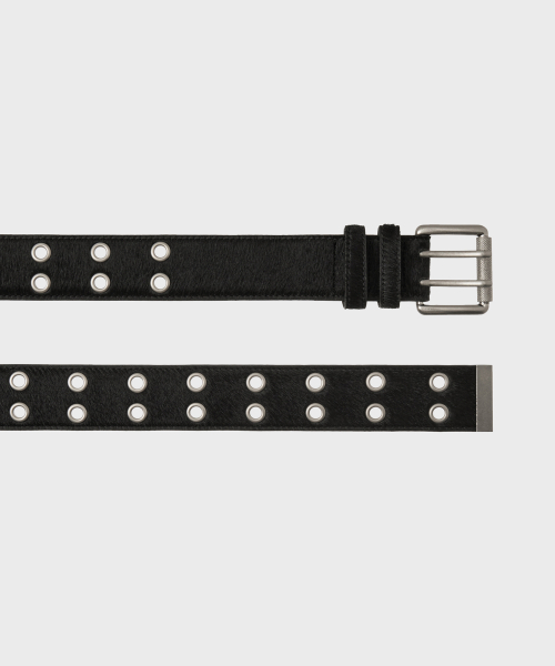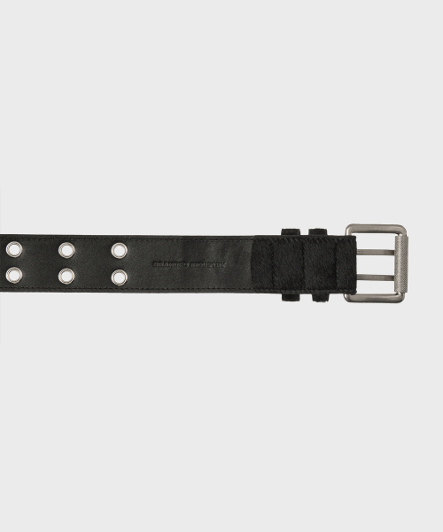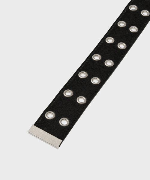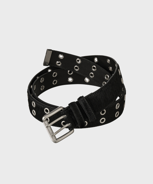 CALF HAIR DOUBLE EYELET LONG BELT [BLACK]