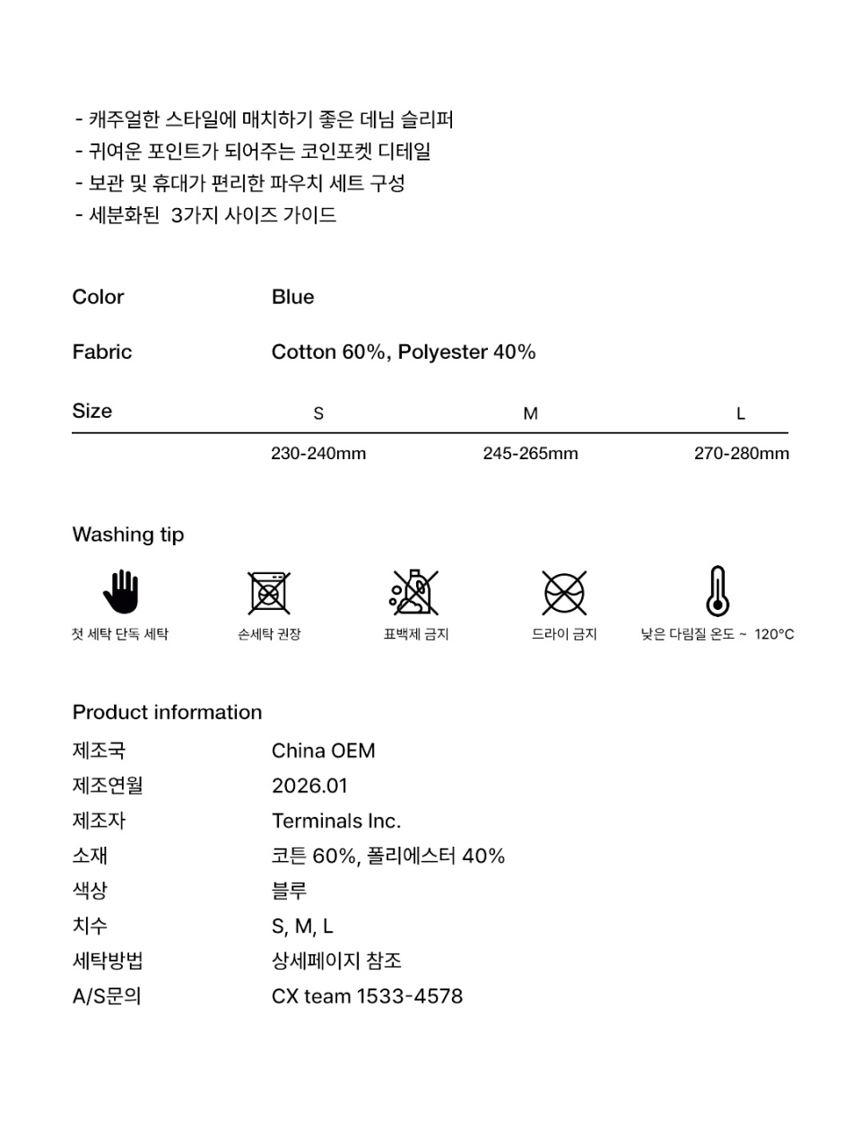 데님 코인포켓 룸 슬리퍼
