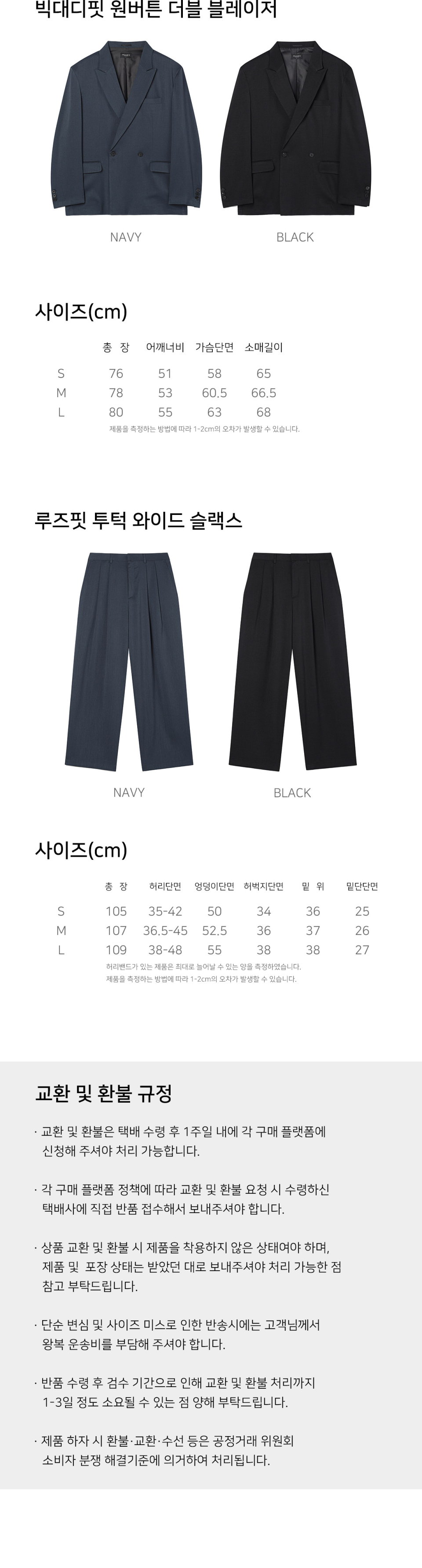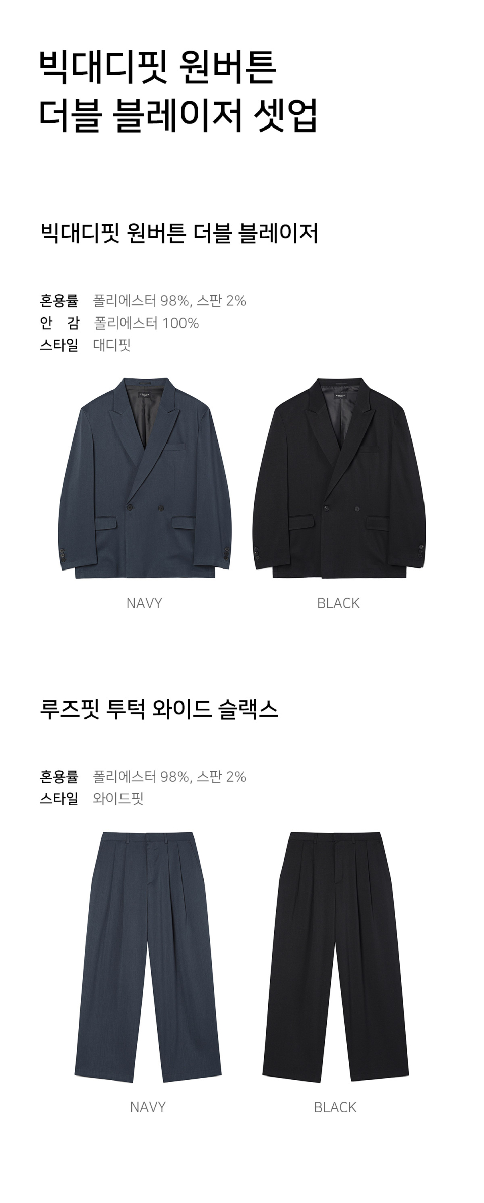 빅대디핏 원버튼 더블 블레이저 셋업 (BLACK / NAVY)